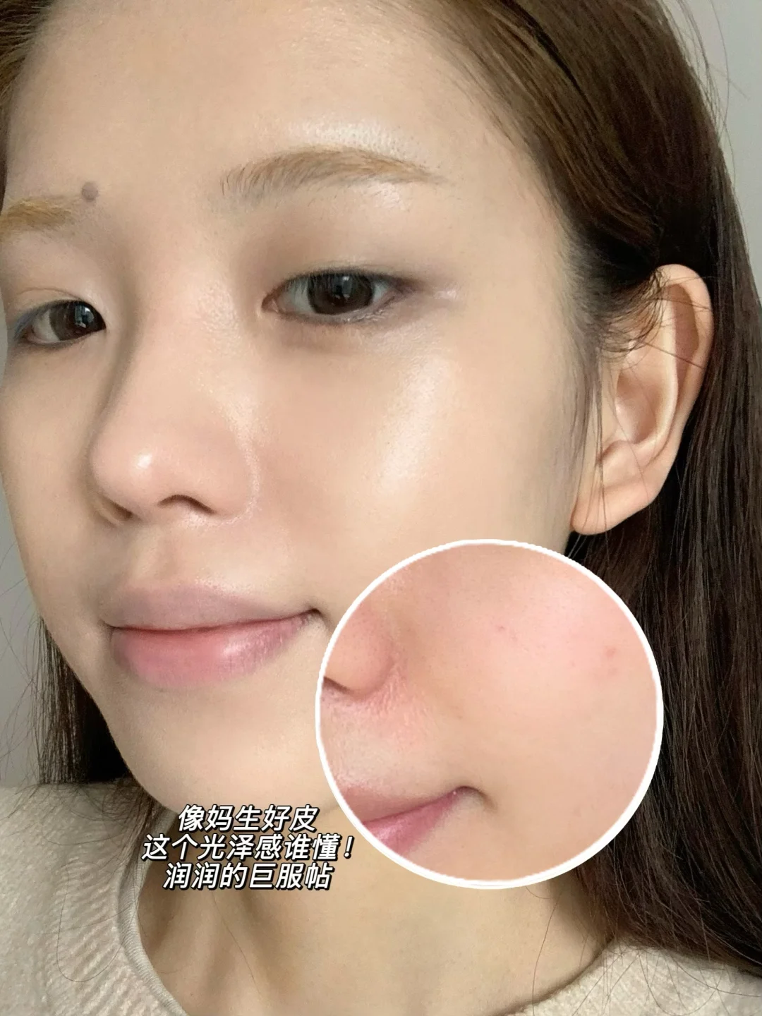 最让我惊喜的是它居然还能兼顾一些遮瑕力!一些小痘印、泛红也能盖得住,叠两层基本可以不用涂遮瑕了,而且完全不会假面,像是皮肤本身就这么好~持妆力也ok的[赞R]带妆8小时还是润润的光泽感,鼻翼稍微出油反而更贴肤,越夜越美丽哈哈~