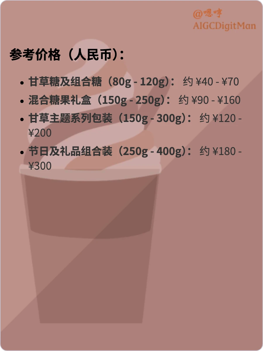 甘草糖及组合糖(80g - 120g): 约 ¥40 - ¥70