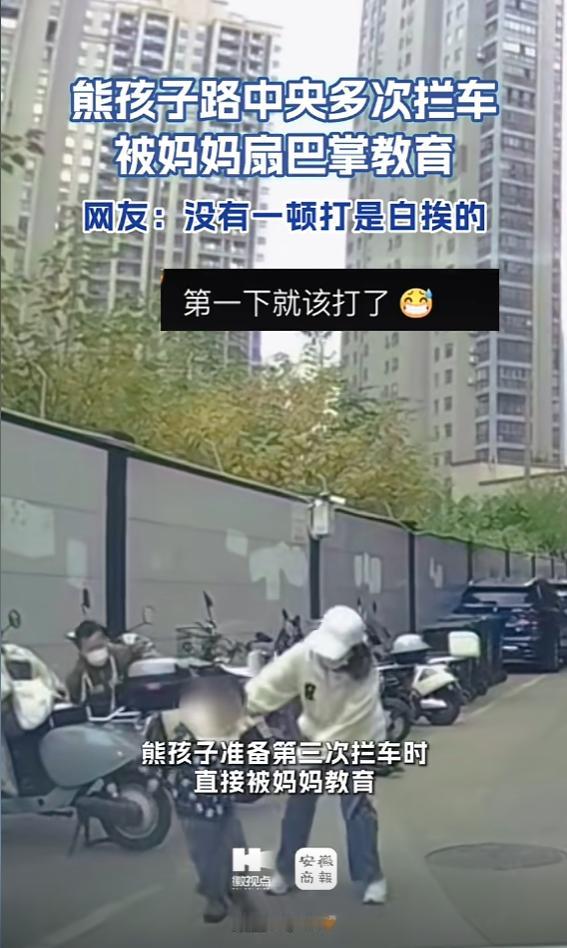 “干得漂亮!”近日,湖北武汉,一男孩停在路边,见妈妈正在忙,于是多次故意冲到马路中央拦车,给车主吓出一身冷汗,正当不知如何是好时,男孩妈妈发现了这一行为,当场怒扇巴掌教育,让车主通过,网友:回去必须吃顿竹笋炒肉! 事情发生在近日的湖北武汉,一条车来车往的街头,一位司机正正常行驶着,没料到前方路边突然有个小小的身影窜了出来,直愣愣地冲到了车头前。 司机吓得心脏骤停,下意识一脚急刹车,轮胎摩擦地面的声音听得人心里一紧,等车停稳司机才看清,挡在车头前的是个年纪不大的男童,身材小巧,胆子却大得惊人。 这一吓已经够让司机冒冷汗了,可没想到这只是开始,男童见车停下,似乎觉得没什么意思,慢悠悠地折返回了路边,司机以为这只是孩子一时贪玩跑错了地方,稍微平复了一下心情,脚刚搭上油门准备起步离开这个 “雷区”,那个小小的身影竟然又像算准了时间一样,再次冲刺到了车前。 就这样男童来来回回折腾了整整三次,每次都是司机刚要起步,他就突然冲出来拦在前面,完全把车流不息的马路当成了自家的游乐场,把几吨重的汽车当成了可以随意摆弄的玩具。 司机彻底懵了,坐在驾驶座上心里满是无奈,甚至比生气更多几分,想训斥几句吧对面只是个不懂事的稚童,想强行开走又根本不可能,万一没控制好距离,后果不堪设想。 后来大家才知道,这孩子会做出这样的举动,只是因为妈妈当时正在路边忙着自己的事,没人陪他玩,他觉得无聊就想出了这么个 “排解寂寞” 的办法。 可他不知道这个看似简单的恶作剧,每一次都在拿自己的生命做赌注,也在考验着司机的反应速度,只要有半秒的疏忽,可能就是无法挽回的悲剧。 就在司机进退两难、场面僵持又危急的时候,一直忙着没顾上看孩子的妈妈终于转过了头,当她看到自己的亲生骨肉正在马路中央,一次次对着行驶的车辆 “挑衅” 时,估计血液瞬间冲到了头顶。 这位妈妈没有丝毫犹豫,也没有像有些家长那样温柔劝导或者轻声呵斥,而是瞬间被怒火点燃,快步冲上前去,对着孩子就扇了一个响亮的耳光。 这一巴掌打得坚决又干脆,没有拖泥带水,紧接着妈妈一把将孩子死死拽回了安全的路边,嘴里的训斥声隔着车窗都能听得清清楚楚,也正是这一巴掌,终于打通了被 “困” 许久的道路,司机这才得以发动汽车顺利驶离。 虽然全程被吓得不轻,但看着后视镜里那个正在挨训的身影,司机心里就算有火气,也慢慢平复了,他清楚对于这种毫无安全概念的孩子,此时此刻或许只有这样直接的教育,才能让他真正长点记性。 这段视频传到网上后,这位妈妈的处理方式不仅没有遭到指责,反而引来了一片叫好声。“干得漂亮!” 几乎成了评论区的刷屏词,还有不少网友调侃,这种时候就得端上一盘地道的 “竹笋炒肉”,不打疼了根本记不住,大家之所以会有这样的反应,并不是鼓励家长动手教育孩子,而是源于对道路安全的深深忌惮。 对于尚不懂事的孩子来说,他们分不清马路和游乐场的区别,也不明白车流背后隐藏的危险,这种无知往往是最致命的,生活中因为孩子贪玩跑到马路上引发的意外不在少数,每一次都伴随着家庭的破碎和无尽的悔恨。 与其等到意外发生后,再在遗憾中流干眼泪,不如在危险萌芽的时候,用孩子能记住的方式,让他明白什么是绝对不能触碰的 “禁区”。 (信息来源:《熊孩子车辆一动他就拦,妈妈一巴掌果断教育》徽视点)