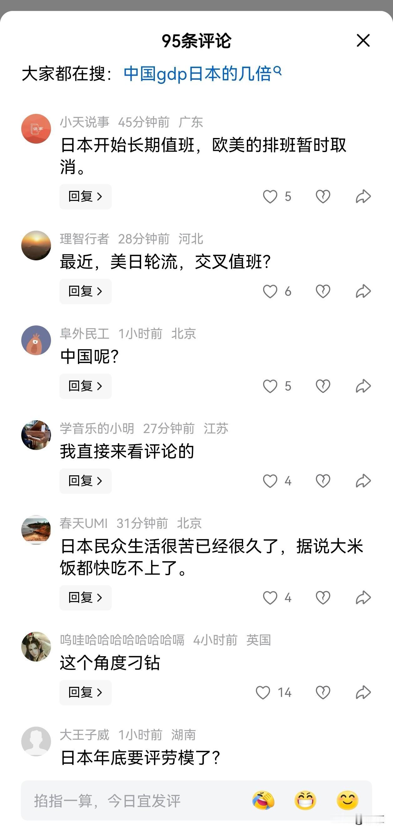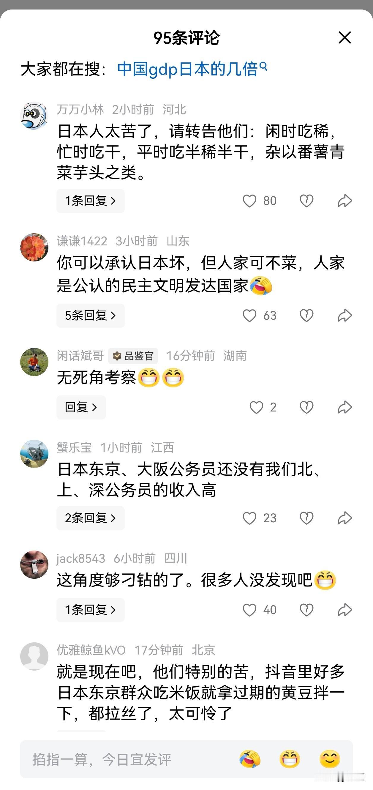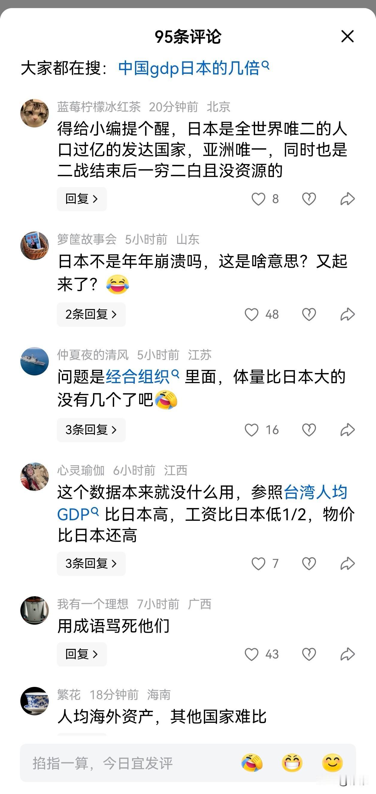 京报网转发了日本内阁日前发布的一则新闻,有关日本名义GDP继续下滑的数据。 日本人自己是沉默接受了,结果评论区的精日们先崩溃了,这种现象在全世界也是绝无仅有,可见中国的汉奸内鬼数量之巨。 同时,也暴露出一个事实,精日内贼们的智商确实是不行。 △