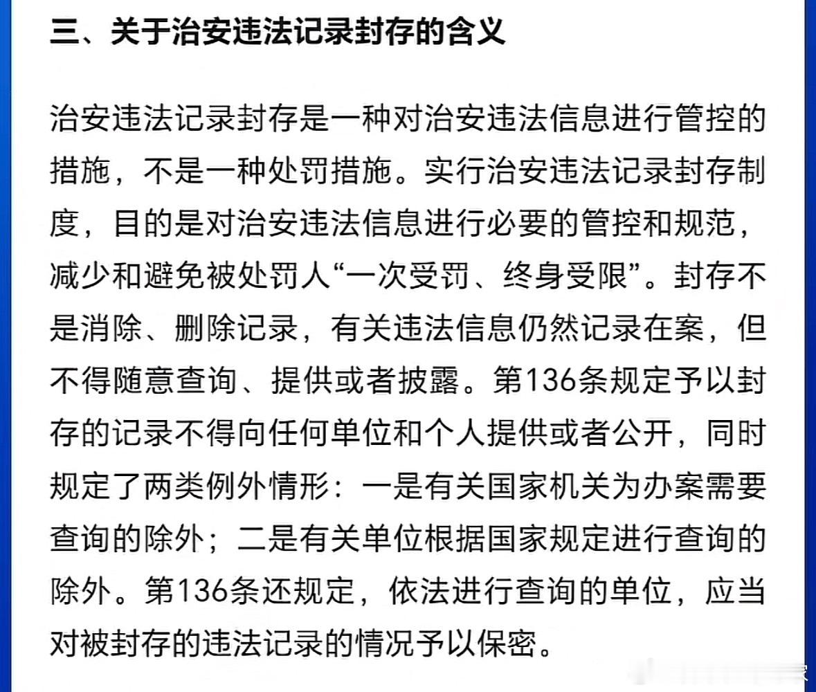 简单总结大家最关心的问题,🔺记录封存目的是减少“一次受罚,终身受限”,🔺封存也不是消除、删除,只是不得随意查询、披露,🔺国家机关办案可以查,有关单位根据规定也可以查🔺吸毒属于违法行为,不属于犯罪,我国对毒品打击和惩治力度是全世界最严格🔺法律面前人人平等法工委回应吸毒记录封存相关问题关于吸毒记录封存的3点说明