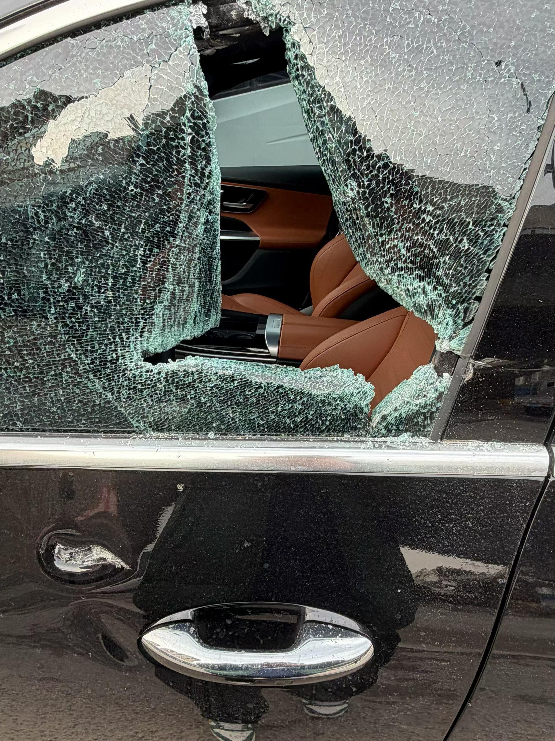 朋友圈有个哥们车玻璃被人砸了年底了这么夸张吗