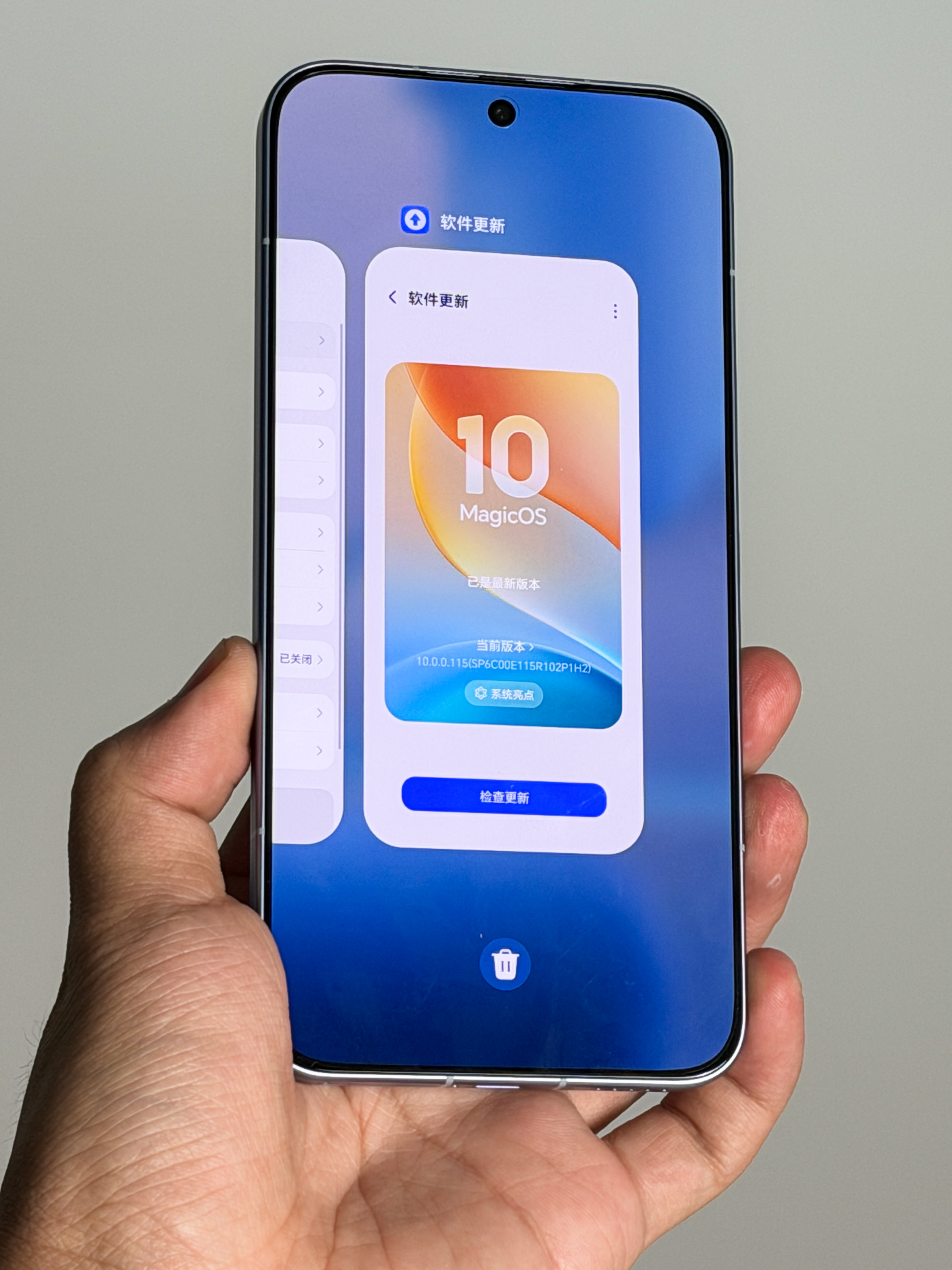 荣耀500 Pro这个横向设计的镜头Deco真的很有辨识度!“海蓝宝”的颜色加上背板还有淡淡的珠光纹理,整机看起来更显活力且质感了!还有就是金属中框,握持感超棒的 西安
