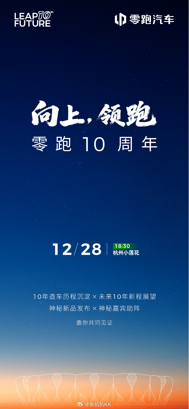 零跑汽车十周年 朱江明发布内部信:站在十年的路口,零跑汽车不能再以“新势力”自居,而要以一家可持续发展、值得尊敬的世界级车企来要求自己。 还有一句话,大家应该地喜欢:“我们证明了好而不贵的产品才是主流。”