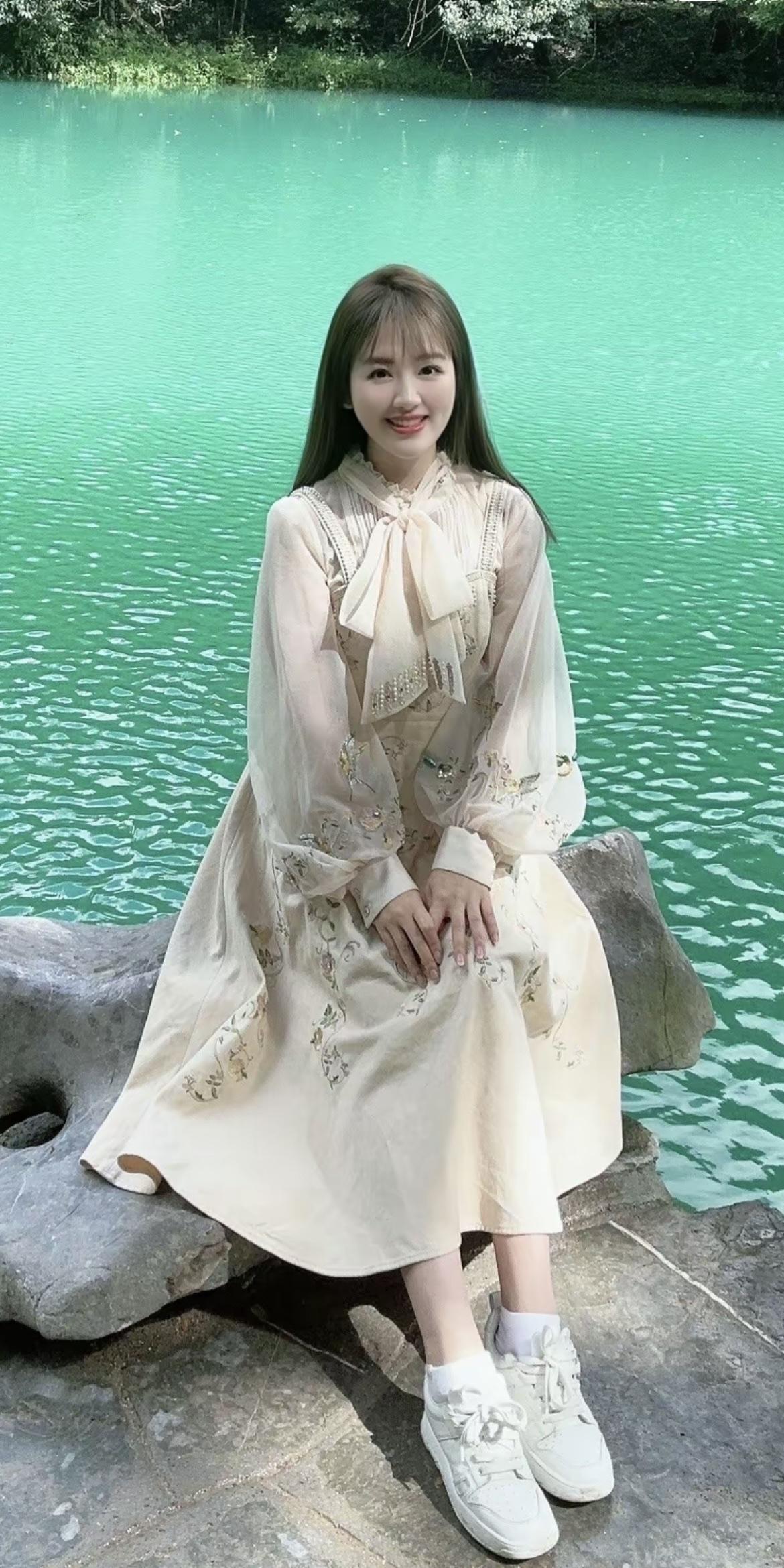 《夏林裹粉,风里轻柔》晴日的林径漫着树影的温,风卷着叶香拂过时,她立在光斑