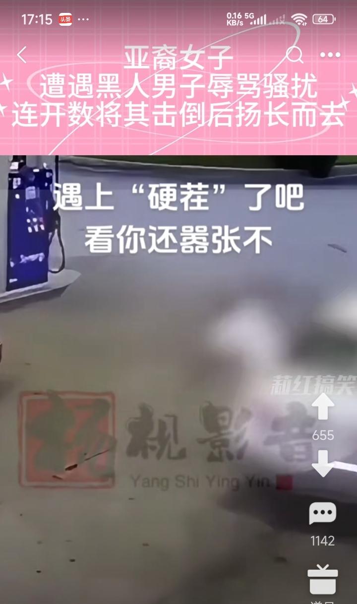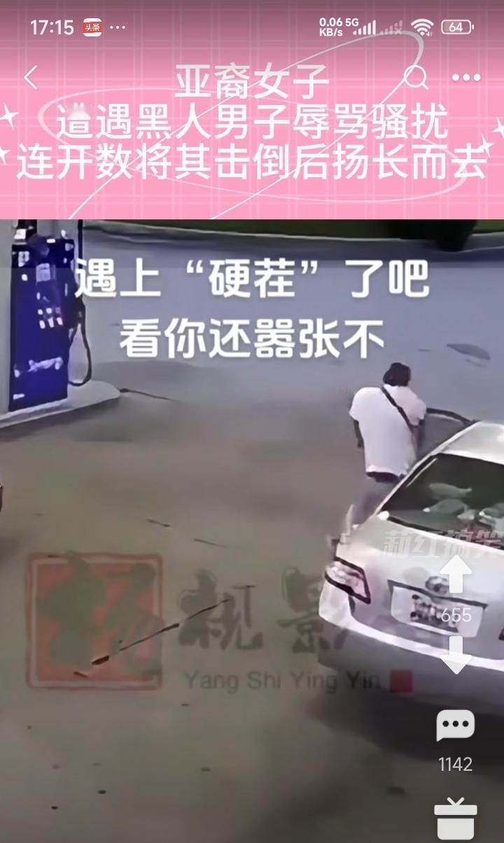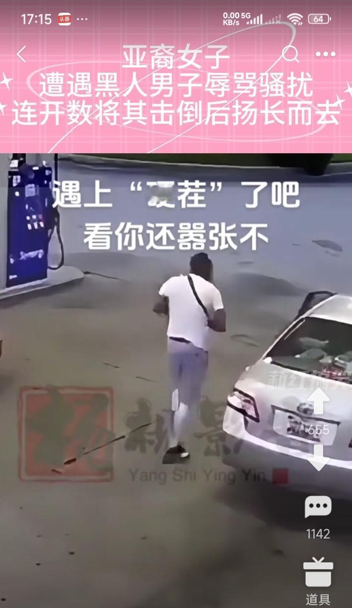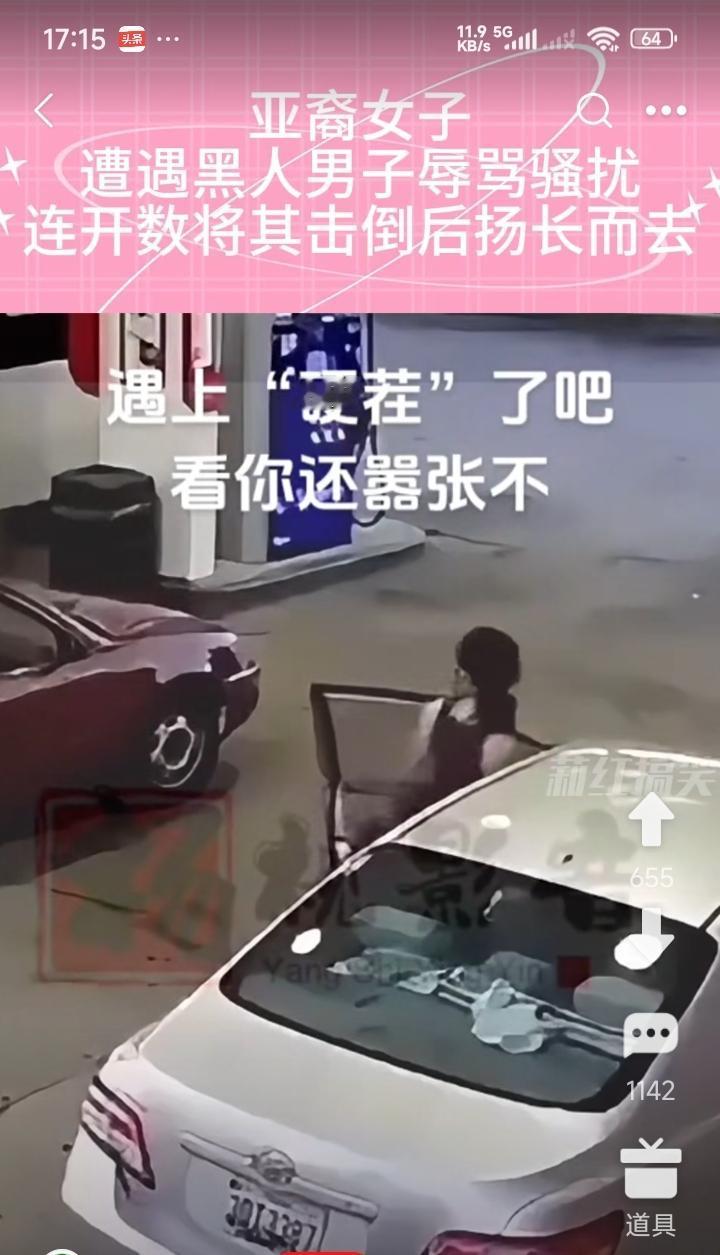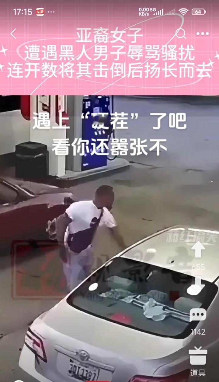 在国外某些国家,女子出门,手里无枪还真的很不安全。 这位女子遭黑人辱骂骚扰,她本想多一事不如少一事,要驾车离开。 不想这黑人不依不饶,追了过来,强行拉开车门。 一个弱女子,面对强壮大汉,也只能好汉不吃眼前亏,掏出枪来对着他就是一梭子。 然后驾车离去。