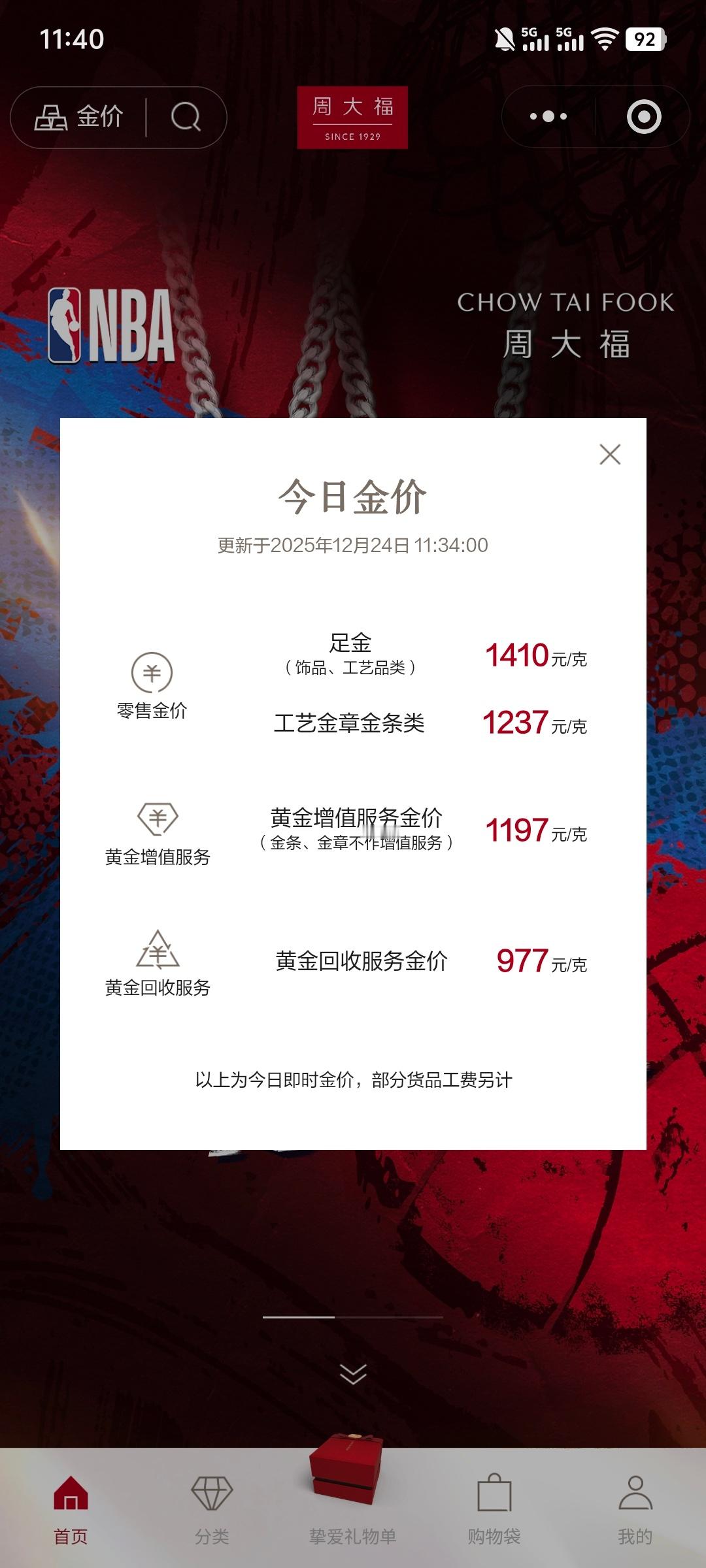 金价癫了金饰价格涨到1411元 我前段时间买的时候还是1186元,这涨速吓人啊!
