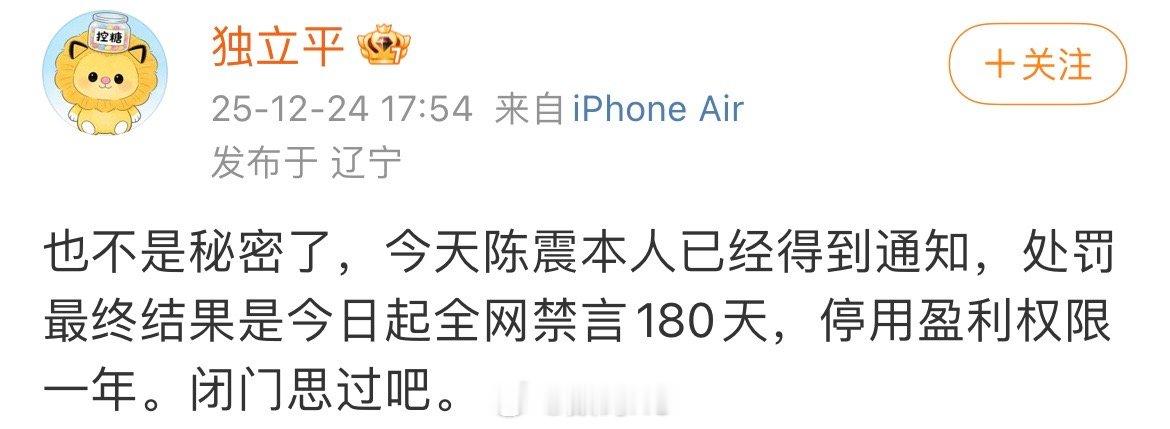 陈震禁言180天,停用盈利权限一年,第一次听说停用盈利权限的说法