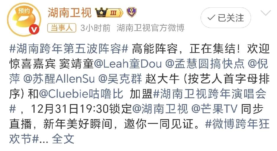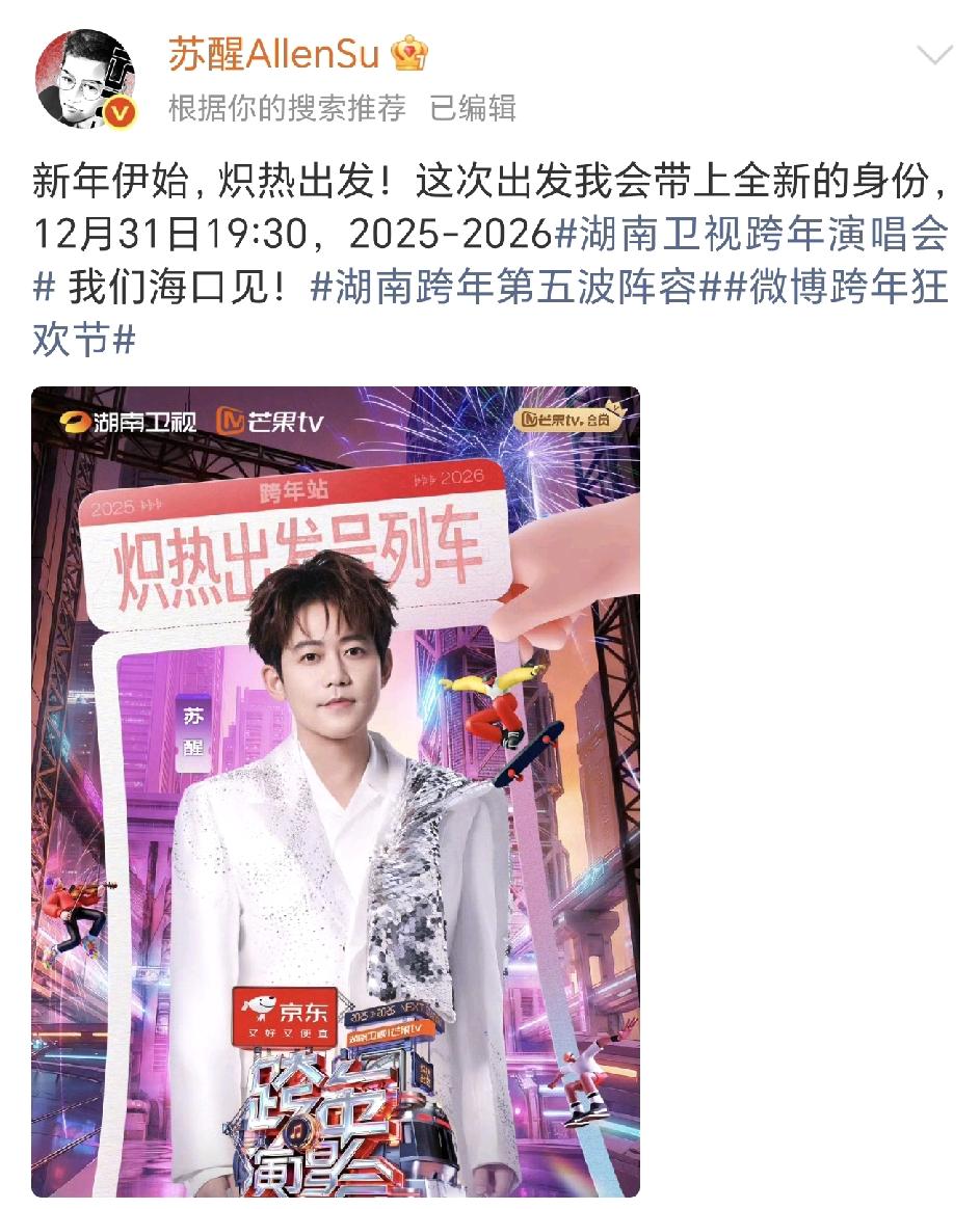 苏醒在央视和美之夜接受采访, 主持人说今年年初在春晚看到你了,年末又看到你了, 苏醒说希望年复一年的可以看到您 [大笑][赞],这话说的多有水平! 看到央视春晚主持人就是上了春晚 我也希望年复一年的可以看到你们上春晚! 既然都这么说了,今年的春晚又准了呗?毕竟这一年兄弟们都这么火! 今年的跨年晚会,苏醒是在湖南卫视,海口直播,还带着他的全新身份,最后一波官宣的,所以是什么身份呢? 不会是主持人吧,湖南卫视的主持人都快比嘉宾多了[捂脸],这饭碗可不好抢啊!苏醒 春晚
