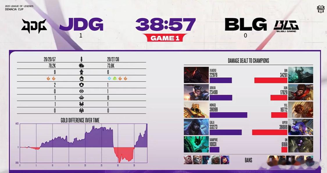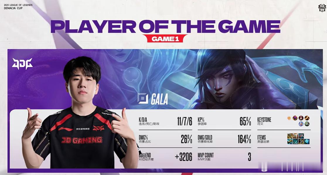 Gala面对Viper声音好大啊,这厄斐琉斯打团太猛了,不只1V1单杀Viper,还丝血打残了BLG中单,红Q玩得也不错,JDG先下一城。On这老牛有点晕,没想到BLG中期拿了大龙还送出去了,被JDG后期逆转局面,BLG面对JDG陷入绝境,再输一把大场就0-2了丹尼Knight队危速归!!2025LOL德玛西亚杯BLG面对JDG陷入绝境JDG对战BLG