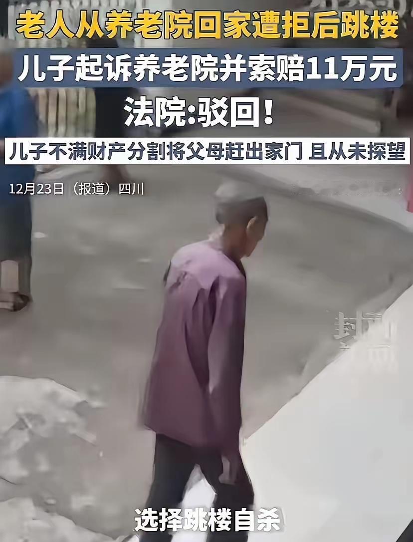 四川成都,老人在养老院看电视想换台,被工作人员拒绝,几天后一个人离开养老院,来到儿子家中,但无论怎么敲门儿子都拒绝开门,老人甚至报警求助,未果后,跳楼身亡。 四川这起悲剧,真的让我见识到了什么叫“子女的绝情比刀子还伤人”! 老人被儿子赶去养老院,临终想回趟家却遭拒,跳楼身亡后,儿子反倒起诉养老院索赔11万,理由居然是“拒绝换台让老人受辱”。 可监控一调,真相简直啪啪打脸!老人当时正背对电视吃饭,压根没看屏幕,是老伴儿想换奥运频道被拒,这居然成了儿子甩锅的借口。 更让人寒心的是,老人住进养老院,本就是因为家产分割没顺儿子的意,被亲生儿子扫地出门的。 大半年里,儿子一次没探望、一个电话没打,直到老人带着“我快死了,想死在家”的卑微恳求找上门,他依旧狠心拒之门外。 老人敲的哪里是家门,分明是儿子早已泯灭的孝心,是自己养了几十年的指望。 法院驳回索赔的判决大快人心,《民法典》早就明确,成年子女赡养父母是法定义务,哪能因为财产分配不均就断绝关系、遗弃老人?这起悲剧的凶手从来不是养老院,而是儿子的自私冷血。 他们总是吐槽养老院冷漠,却忘了家人的陪伴才是老人晚年的精神支柱。 房子没拿到就翻脸不认爹,连最后一点体面都不肯给,这样的子女,比任何冰冷的机构都更伤人。 赡养从来不是把老人丢进养老院就完事,而是哪怕有矛盾,也别关上最后一扇门。你觉得该追究这个儿子的法律责任吗老人坠楼 大爷坠楼 大爷跳楼