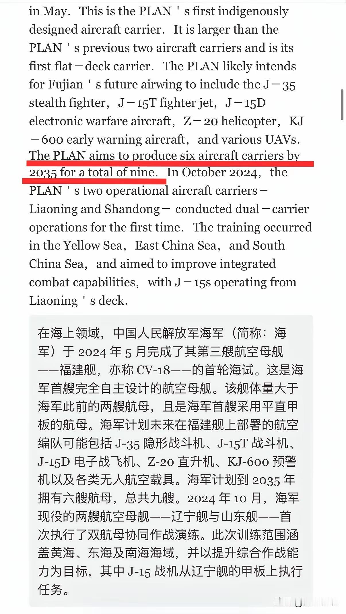 美报告称2035年中国或有9艘航母美国的报告保守了,应该是“至少”而不是“或有”9艘航母。但数字不重要,重要的是如何使用?何时使用?敢不敢使用?