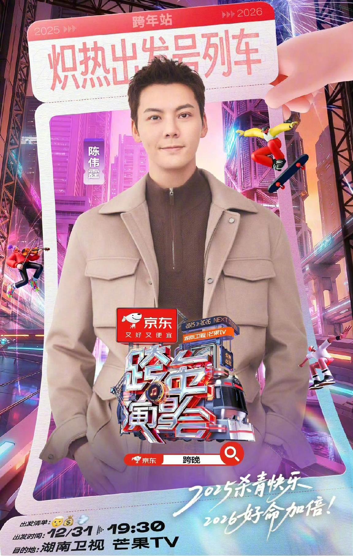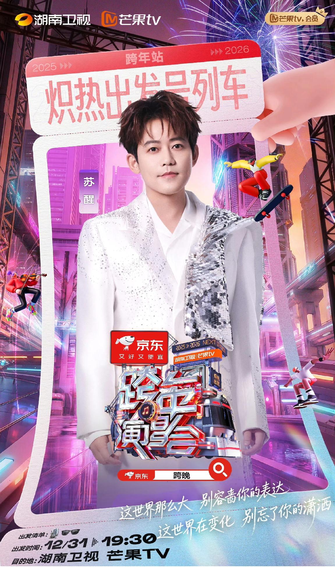 湖南卫视跨年晚会全阵容官宣, 好多人! 看看你最期待谁! 说说我的,按喜爱顺序排序~ 陈楚生, 窦靖童 苏醒 陈伟霆 那英, 徐佳莹 其余的按好奇顺序再排序~ 邓超,华晨宇 其余的看不看都行了[捂脸]! 还有一个好奇的就是谁压轴呢?跨年晚会 陈楚生 苏醒华晨宇