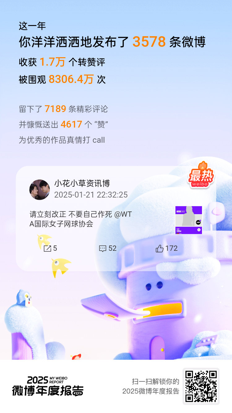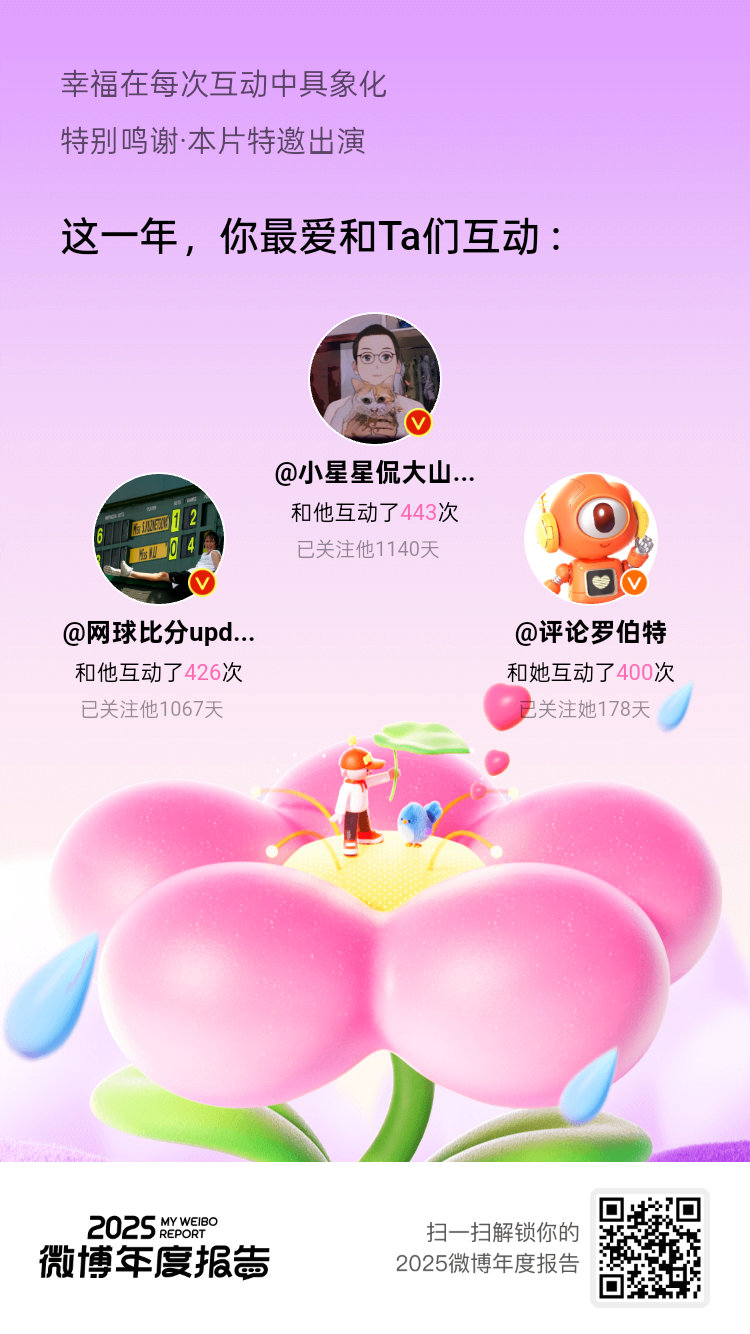 捷报喜报!2025我的V影响力力持续在线:橙V成就点亮315天! 感谢家人们一路力挺!来看看你的年度总结吧~点击开启>>2025微博年度报告 微博年度报告微博之夜