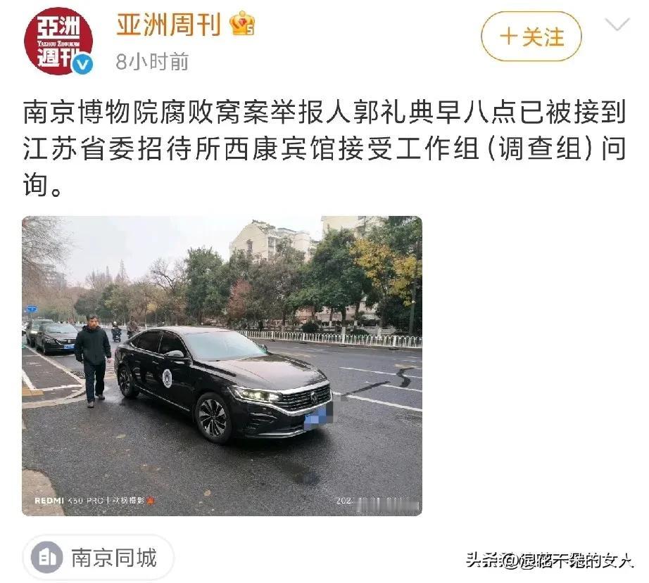 最新消息! 据亚洲周刊:举报徐湖平的郭礼典已经接受了调查组的问询?[捂脸] 在我看来南京博物院原院长徐湖平被举报,已经引起了调查组的重视,而且看来进展还非常快,不是看新闻说昨天才成立联合调查组吗? 按照这个进展,估计用不了多长时间,结果就会向外公之于众了,也好给大家解疑释惑,免得现在社会上讨论的比较多,沸沸扬扬的。