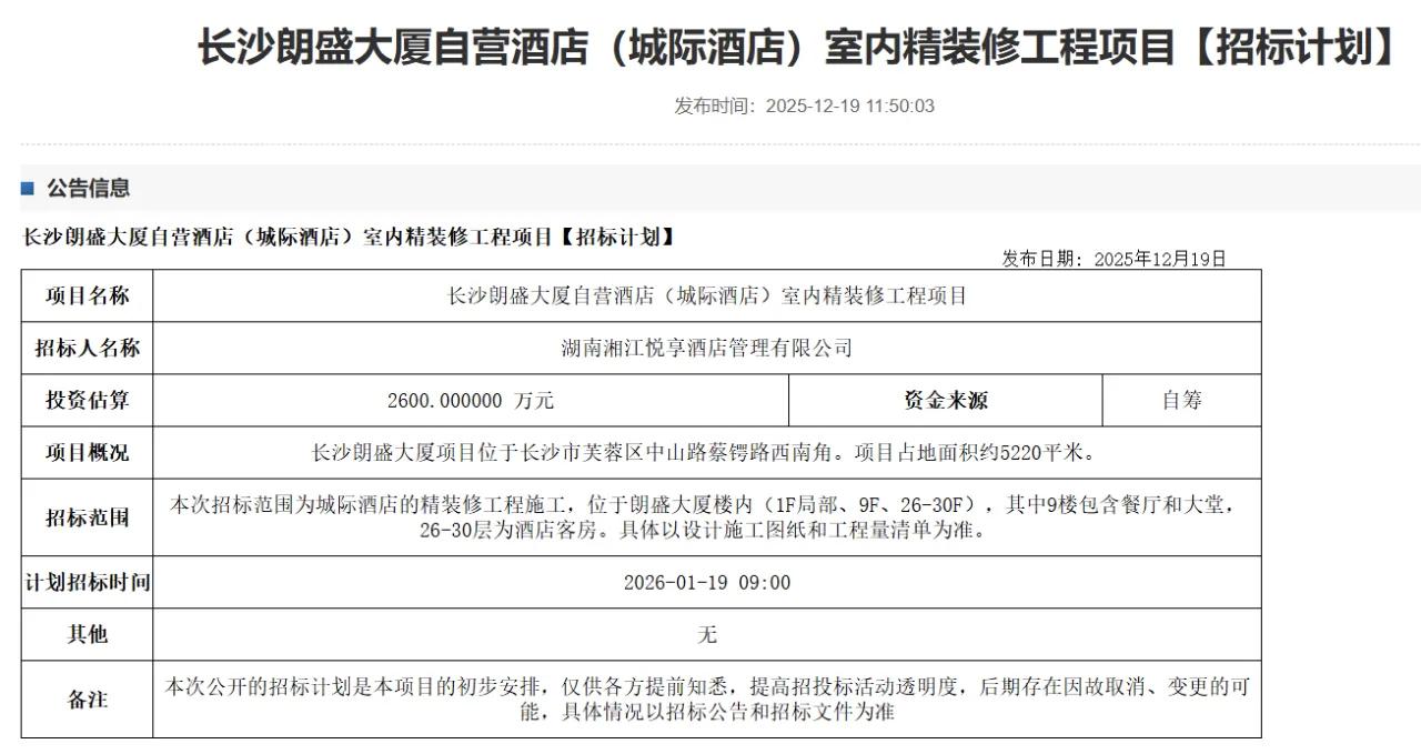 长沙核心商圈再迎城市更新重磅利好!蔡锷路那栋烂尾十余年的朗盛大厦,如今以新案名“湘江悦上”加速复活,随着城际酒店精装修工程招标启动,这座曾让老长沙惋惜的“遗憾地标”,即将以高端酒店综合体姿态,重新扎根五一商圈黄金地段,预计2026年4月全面竣工亮相。 回溯这栋楼宇的坎坷历程,堪称长沙商业地产的一部波折史。其前身是长沙报业文化大厦,2006年由长沙晚报携手房企启动开发,2009年定名朗盛大厦奠基动工,2012年换资方后改名拟引入德国世廷酒店,2015年又转型为创业孵化平台“五一沃客”,几番调整始终没能摆脱困境,2016年主体封顶后彻底停工,一停就是9年。蔡锷路毗邻五一广场、坐拥核心区位,这栋闲置楼宇却成了城市界面里的“空白格”,直到2023年10月,国企湘江集团湘江资产以2.44亿元成功竞得,才为其按下重启键,这也是湘江集团跨江布局河东的首个项目,一句“跨江登陆,河东首秀”,尽显国企盘活存量资产的决心。 如今的湘江悦上,早已敲定清晰的焕新路径,品牌酒店矩阵落位更是亮点十足。项目已明确引入万豪旅享家旗下福朋喜来登酒店与华住旗下全季酒店,再搭配自营城际酒店,形成高中端互补的住宿布局:福朋喜来登占据10至20层,主打商旅人群;全季酒店落位21至24层,瞄准年轻客群;城际酒店则覆盖1楼局部、9楼大堂餐厅及25至30层客房,总酒店建筑面积超1.8万㎡。目前项目土建工程已全部完工,幕墙施工完成80%,精装修招标启动标志着进入运营筹备冲刺阶段,按照规划,改造完成后项目估值将实现翻番,年租金回报率有望突破6%,妥妥的五一商圈潜力新地标。除了酒店业态,项目还主打“慢生活,快乐多”理念,规划时尚餐饮、休闲娱乐、室内运动等多元商业,目前正全面招商,未来将重塑蔡锷路至五一广场的City Walk路线,填补区域品质消费空白。 有人疑问,五一商圈酒店扎堆,湘江悦上凭什么突围?答案藏在长沙持续火热的文旅市场与存量物业转型的风口里。数据显示,2025年长沙全年预计接待游客达2.3亿人次,旅游总收入超2600亿元,稳居全国热门旅游城市前十;作为核心流量入口的五一商圈,更是连续三年跻身中国夜经济影响力十强,夜间消费占比高达64%,今年五一假期开福区星级酒店前三天平均出租率超90%,旺盛需求为新酒店提供了坚实支撑。反观长沙写字楼市场,2025年上半年甲级写字楼空置率仍达31.5%,租金持续下行,将低效空置楼宇转型为酒店,既契合市场需求,也是盘活资产的最优解之一,湘江悦上的转型正是踩准了这一趋势。 事实上,朗盛大厦的涅槃并非孤例,长沙早已掀起烂尾楼、闲置楼宇转型热潮。河西溁湾镇的绿地湖湘中心,曾烂尾多年,2025年5月已实现五大品牌酒店开业,全季、桔子、亚朵等齐聚,打造超1000间客房的酒店集群,预计年接待游客50万人次;火车站对面的嘀嘀大厦,前身三九楚云大酒店闲置多年,2023年转型红色酒店与文化会客厅,2025年接待游客已超百万人次,直接带动周边商业复苏。 这些成功案例的背后,离不开长沙城市更新政策的强力加持。2025年5月《长沙市城市更新办法》正式落地,明确支持老旧厂房、低效楼宇等存量物业改造,鼓励转型为酒店、商业综合体、产业园区等复合业态。据统计,仅2025年以来,长沙就已推动十余个烂尾楼及闲置楼宇启动改造,其中超半数布局酒店或长租公寓,逐步形成“定位差异化、运营品牌化、功能复合化”的更新模式,既有效缓解了写字楼过剩压力,更让一批城市“边角料”变身活力增长点。 从烂尾闲置到品牌云集,湘江悦上的蜕变,是长沙城市更新的生动缩影。随着2026年竣工日期临近,这栋扎根蔡锷路的焕新地标,不仅将为五一商圈再添高品质住宿选择,更将以“酒店+商业”的复合业态,为长沙文旅消费注入新活力,我们拭目以待这颗城市新星的绽放。