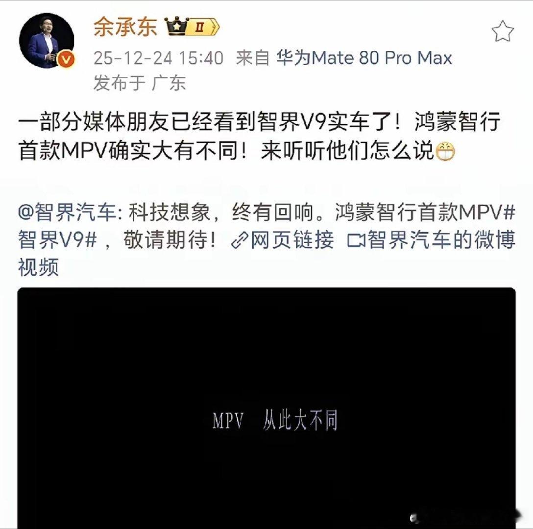 华为余承东:MPV从此大不同,鸿蒙智行首款MPV确实大有不同!