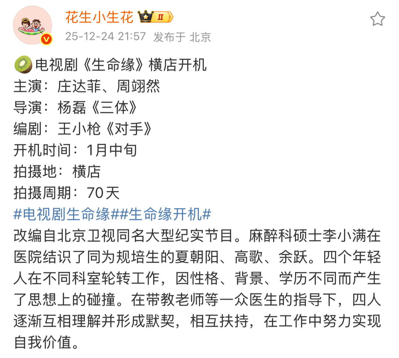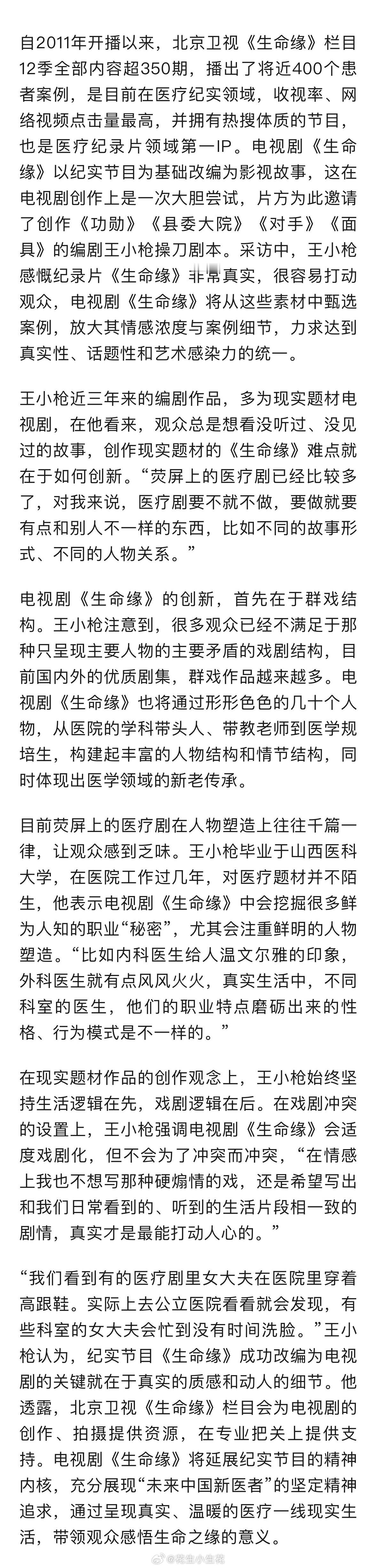 《生命缘》 居然是根据北京卫视的纪实节目改编的剧。1月中的话 等于马上了。