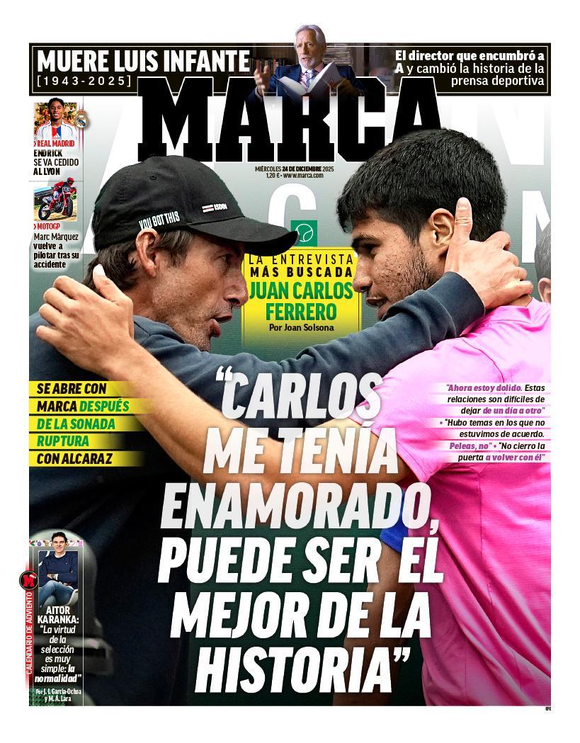 费雷罗接受马卡报采访,谈到未来仍有可能和阿卡再续师徒前缘:“从卡洛斯的处境来看,他的家人会为他着想,而我也会为我着想。双方在某些问题上尚未达成一致。如果我们坐下来好好谈谈,也许还能挽救的可能,但最终我们没有坐下来谈,我们决定不再继续下去。事情的真相就是这样。”费雷罗表示,原本没有任何迹象表明他不会在2026年继续与阿卡合作,这次分手并非因为金钱或两人网球学院问题。最重要的表态:费雷罗不排除未来再次加入阿尔卡拉斯团队的可能性。这段断崖式分手,或许真的可能破镜重圆。阿尔卡拉斯费雷罗结束合作