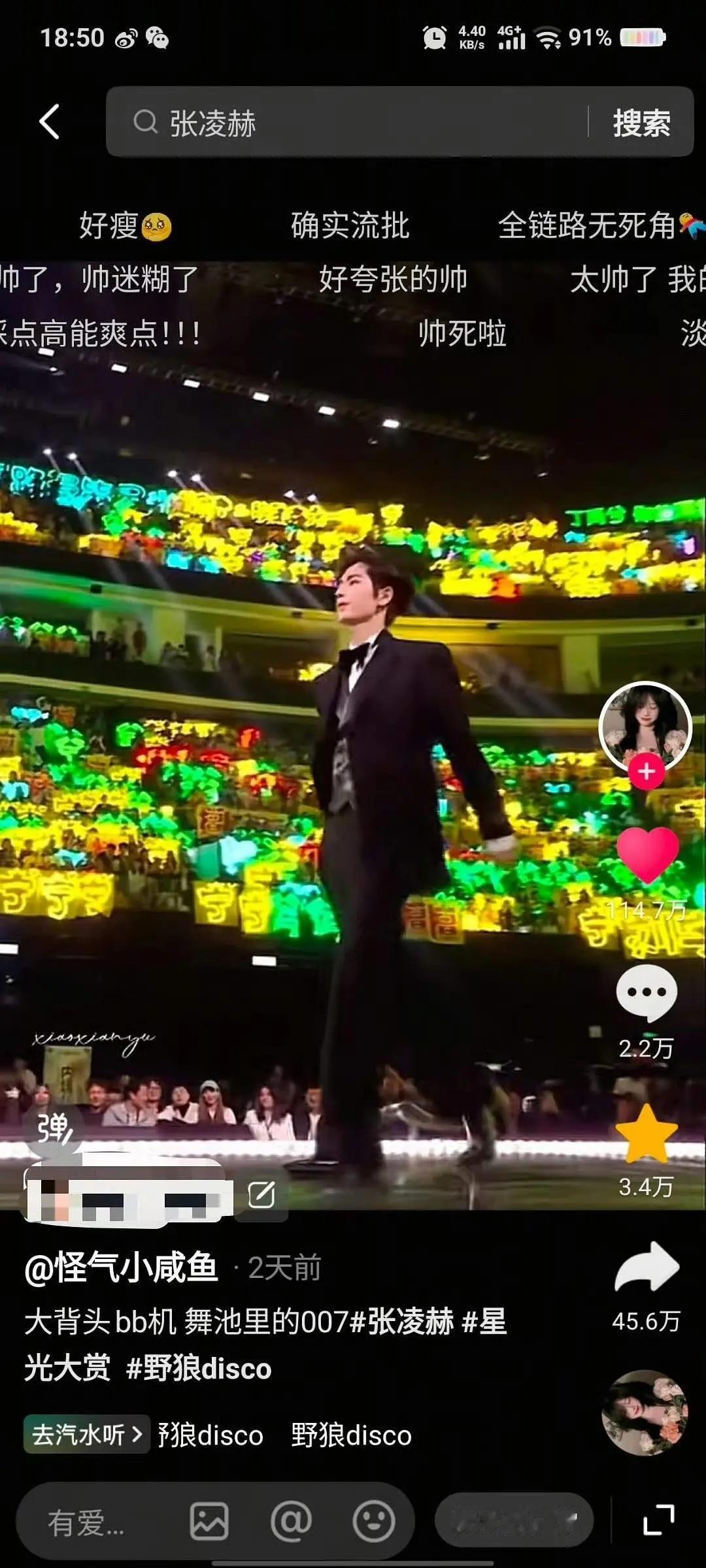 张凌赫星光大赏抖🈶2个单人百万赞了🔥