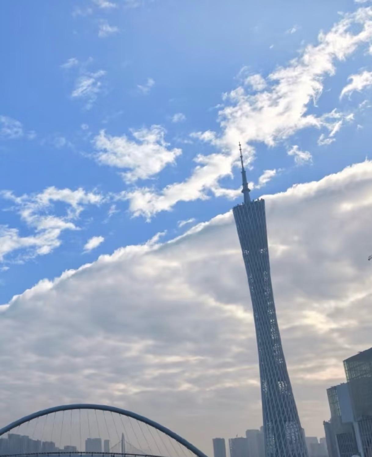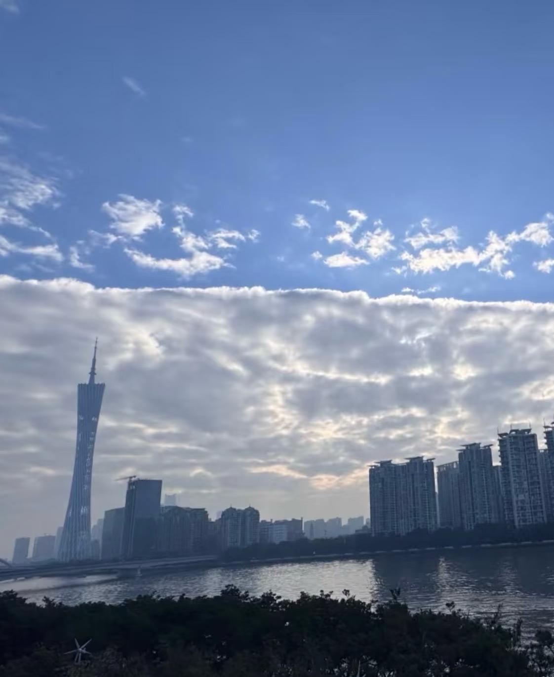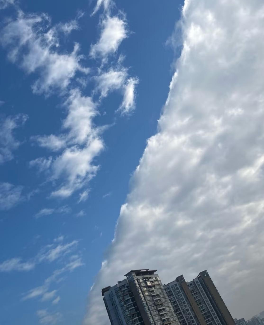 广州天空出现教科书级别的湿度锋! 广州上空出现了 非常明品的“阴阳天”“—线天” 一边是厚厚的云 另一边是湛蓝的晴空 这是典型的“湿度锋”现象 是较为潮湿的云系VS较为干燥的气团 干湿气流相遇所产生的清晰边界 广州这教科书级别的湿度锋 也太酷了吧!