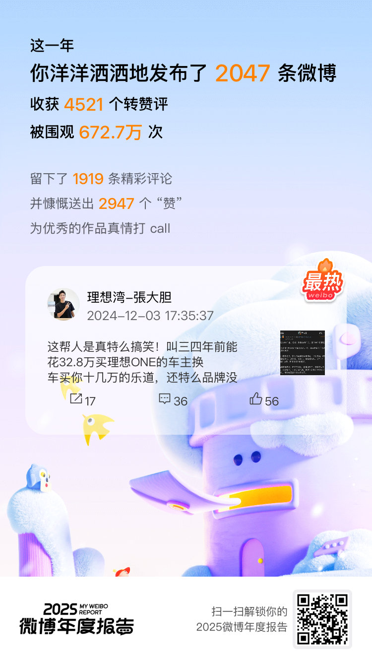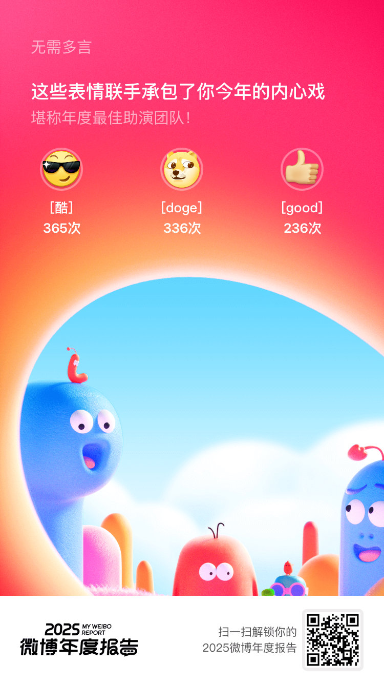 微博年度报告 说出来我自己都不信!2025我居然有365天都在微博“营业”!比上班打卡还积极是咋回事!你的微博出勤率是多少?速来一较高下吧>>2025微博年度报告 微博之夜