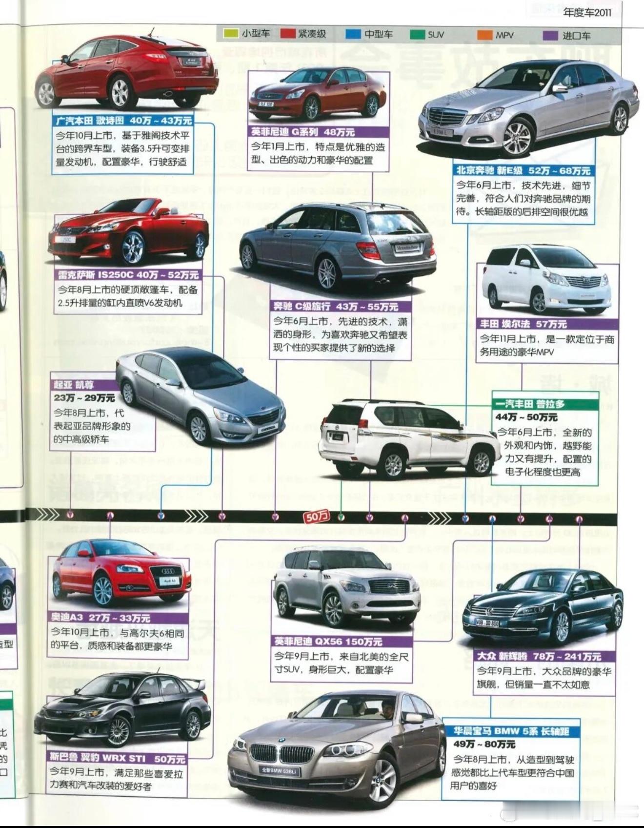 看到了以前的汽车杂志图,原来2011年的埃尔法卖57万,现在它身价翻倍了吧,其他车的价格现在都下来了吧