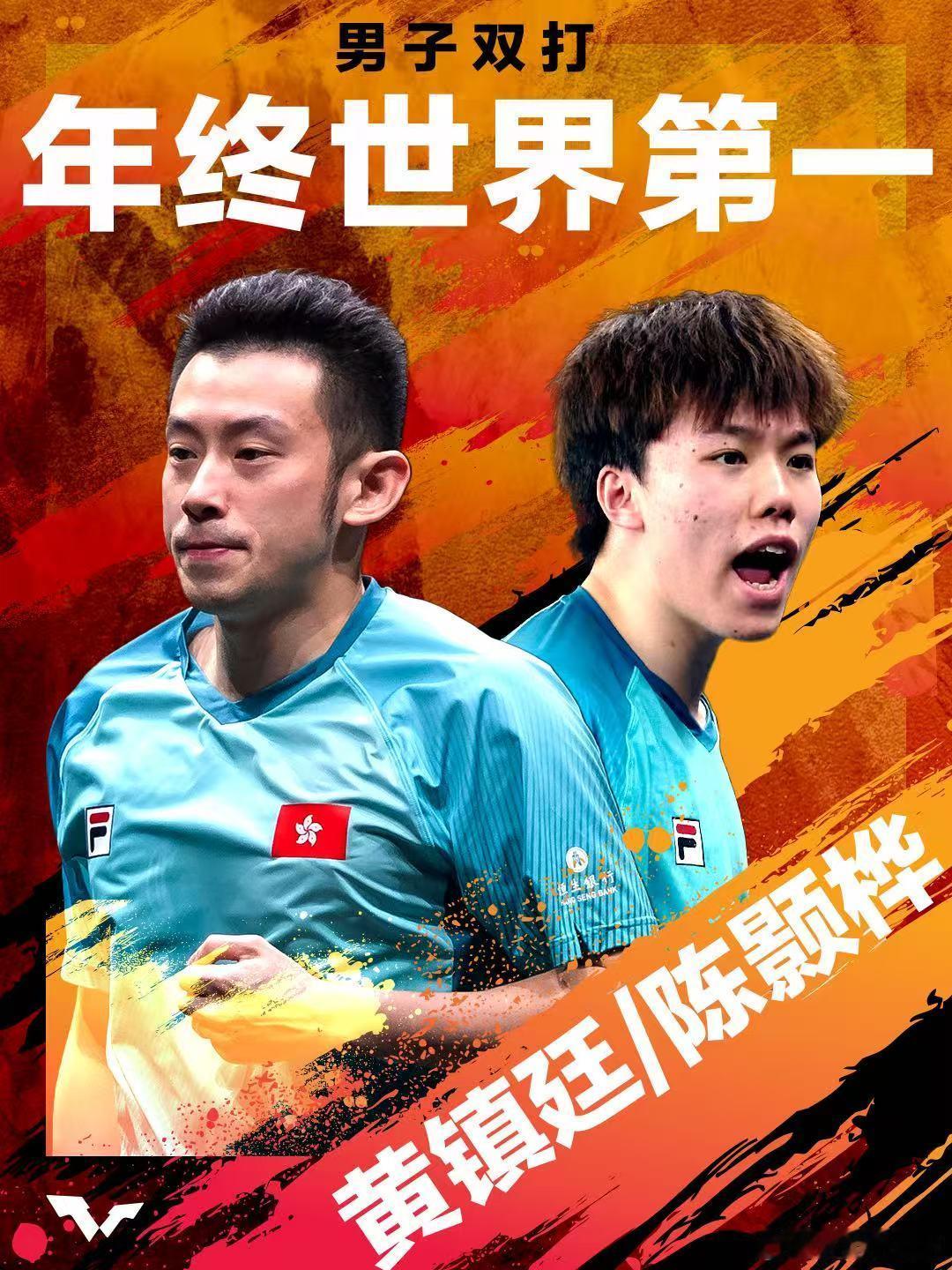 WTT五个单项年终世界第一:男单:王楚钦女单:孙颖莎男双:黄镇廷/陈灏桦女双:王