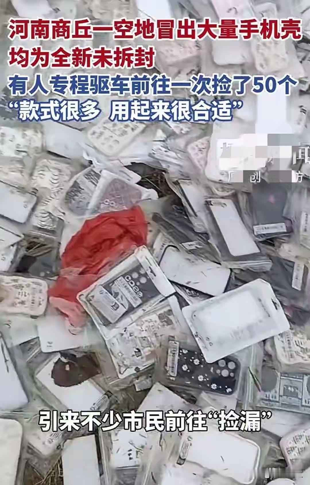 河南商丘惊现“手机壳山”!市民驱车疯抢,有人一次捡50个,来源成谜 河南商丘永城一处偏僻空地突然爆火!数百平方米的空地上堆满全新未拆封的手机壳,密密麻麻像座“小山”,吸引大批市民驱车赶来“捡漏”,场面热闹如赶集! 这些手机壳全带密封包装,清晰印着iPhone11至16的机型标识,还有少量安卓机型混杂其中,质感扎实、做工规整,完全不输市面上二三十元的商品。有市民专程驱车半小时赶到,一口气捡了50个,直言“够自己用好几年,还能分给亲友”;不少人全家出动骑三轮车批量装载,安卓机型最抢手,早早就被抢空,晚到的只能捡些零散款式。 这么多全新手机壳为啥被丢在空地?目前官方还没给出明确结论,网友猜测可能是厂家库存积压、物流失误,或是非法倾倒。业内人士透露,手机壳成本低,处理库存的仓储、运输费可能比售价还高,“宁愿丢弃也不低价卖”成了行业潜规则。当地街道办回应不知情,相关部门已介入调查,还提醒市民勿擅自转售,避免法律或安全风险。