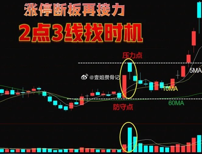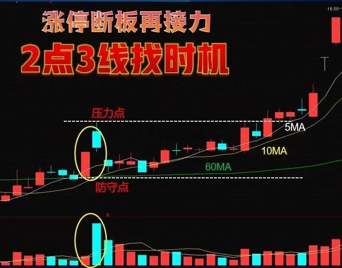 低位出现涨停,尤其是1个月内的首板,通常会伴随着巨量洗盘,这主要是前期有太多的套牢盘,还有抄底的跟风盘,主力通过放大量的阴线来吓跑这些筹码,便于后期酝酿下一波拉升。这种洗盘方式通常有3种,放在下方的图中,主要是成交量放的特别大,阴线大小可不用太过于纠结,出现长上影也符合。关键是涨停后的阴线洗盘,就会形成2个点,分别是涨停板的低点做防守,阴线的高点做压力点,突破压力点是上涨的信号,而跌破防守点则表示形态走坏,转为下行,可以参考图6的走势。最后呢,3线是指5日、10日和60日线,其中60日线是中期多空分水岭,60日线要站稳表示多方强,而5日和10日则是短期方向的追踪线,激进可在调整5-10日线间找入场点,稳健者突破压力点作为进场点,值得收藏!