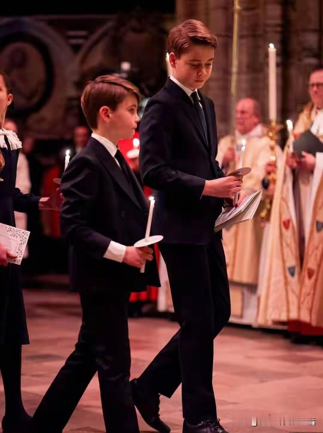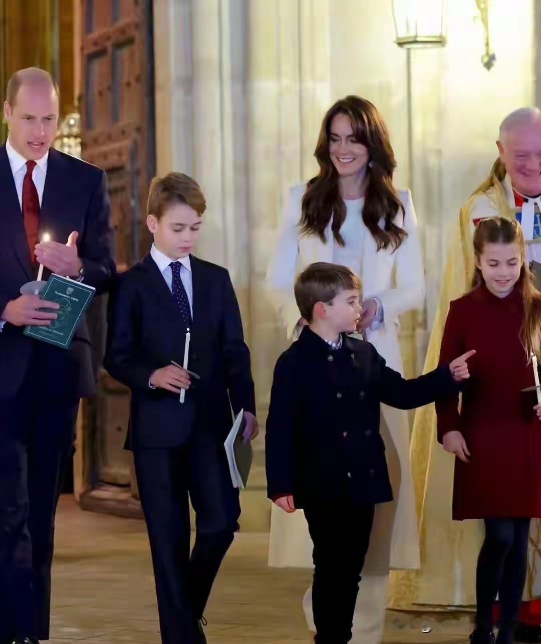 小小王子们真的是气宇轩昂,自带王者气场。 昨天是西方的圣诞平安夜,是一年当中最热闹的一天,尤其是英国圣诞氛围最浓烈。 威廉王子领着一家人参加了教堂的祈福活动。 小小王子公主们都盛装出席了,梳着小分头儿,像一个小大人一样。 并肩行走的小哥俩,像不像当初的威廉和哈里?