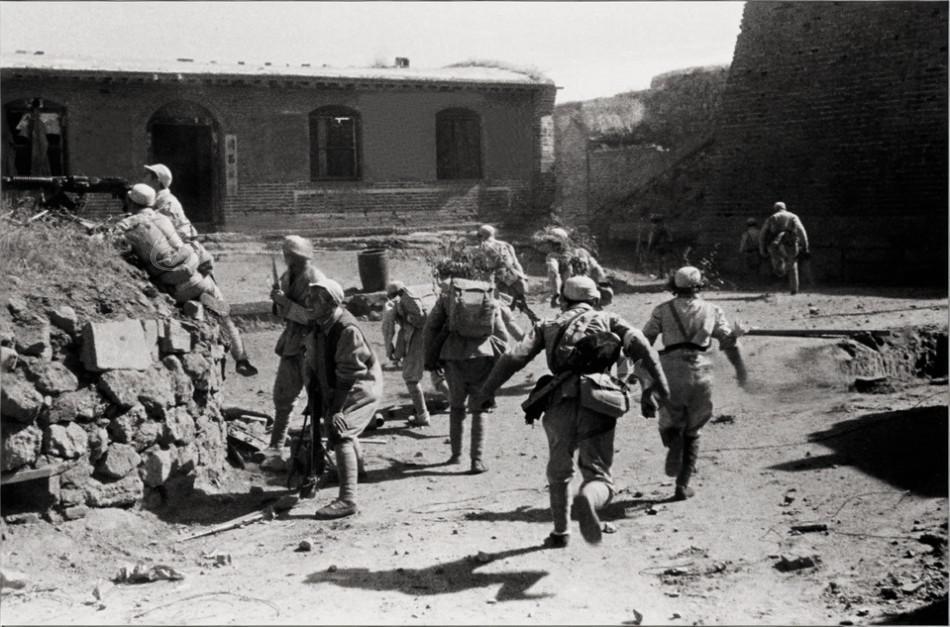 这张照片生动定格了1948年辽沈战役序幕——义县巷战的紧张瞬间。 东北野战军战士们身着简洁的军装、背负行囊,或依托石墙掩体戒备,或快步向街巷深处冲锋,一旁的重机枪已架设在土坡阵地,正为战友提供火力掩护;街巷尘土斑驳,处处透着战斗的焦灼氛围。 作为辽沈战役的“前哨战”,义县战斗的胜利不仅拉开了辽沈战役的大幕,更打开了后续夺取锦州、封闭东北国民党军退路的关键通道。照片里战士们的冲锋姿态,正是解放战争战略决战阶段,我军英勇作战、向胜利推进的鲜活缩影。