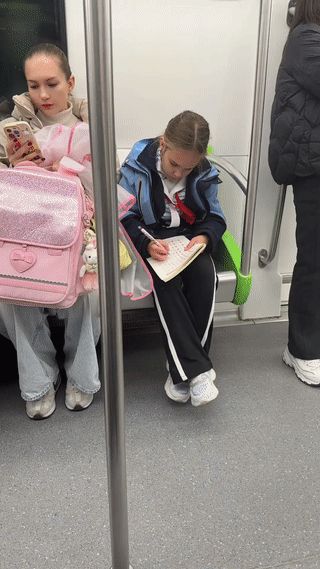 浙江杭州地铁上。 有网友拍到一名外国小女孩正在认真的学写中文汉字。 而在女孩旁边坐着的女人应该就是小女孩的妈妈。 看起来在中国读书上学也得入乡随俗啊?