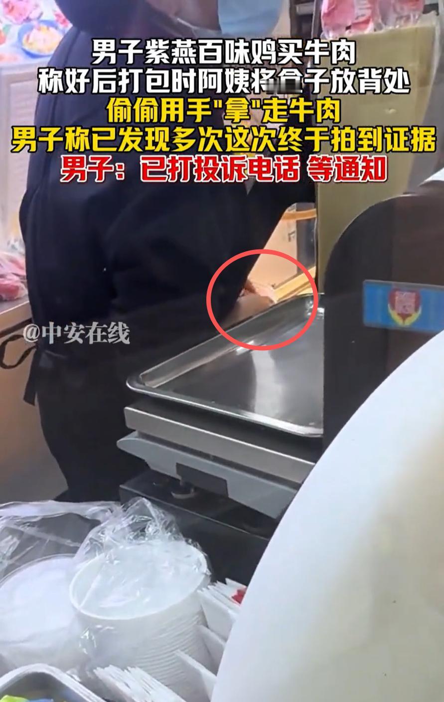 必须严惩!江苏南通,一男子去店里买卤牛肉,店员刚把牛肉称重,就趁着顾客不注意“手动抽成”,不过她没想到的是,男子因为不是第一次吃亏,早就做好准备,用手机拍下了全过程 视频显示,店员先把男子购买的牛肉装盒称重,算完价格后,她突然把牛肉拿到秤下面,趁着打包的功夫,将里面的牛肉抽出几片,整个过程相当丝滑连贯,完全不像是第一次的样子 男子表示,这种情况他已经见过好几次了,但之前都没有证据,所以这次提前就打开了手机摄像头,终于让他拍到了,目前他已经打了投诉电话,等待调查通知 此事发到网上后,也引起了不少网友的不满 有网友分析说:估计不一定是老板的事,是服务员偷着昧了。开店做生意缺斤少两,在秤上做手脚就行,没必要偷偷摸摸。服务员每天拿点自己吃的就有了 其实严格意义来说,顾客付完钱,东西的所有权已经发生变化,再动手拿走,本质已经不是服务问题,而是性质更重的行为 卤牛肉不便宜,一次抽几片不显眼,次数多了金额自然就上去了。很多小店出问题,往往不是一锤子买卖,而是觉得一次两次没人计较,久了就成习惯,最后翻车 如果是店员个人行为,老板应当加强监督和培训;如果真是店铺默许的做法,那问题就更严重。不管怎样,最终受损的都是商家自己的口碑。现在很多地方都在推广明厨亮秤、透明消费,那些还守着老旧套路、动手动脚的,迟早会被顾客淘汰 希望这次投诉能有一个清楚的调查结果,该处理的处理,该整改的整改。我们作为消费者,平时买东西也不妨多留个神,哪怕只是看一眼秤、核对一眼东西,既保护自己,也让那些想动手脚的人知道:现在的人,没那么好糊弄
