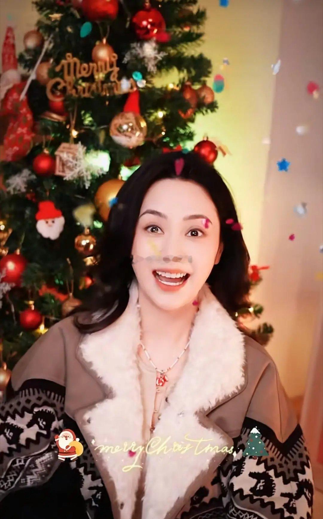 42岁阿娇圣诞穿搭尽显魅力,翻领棉服搭配黑裤子,保暖时髦,状态极佳似28岁少女。
