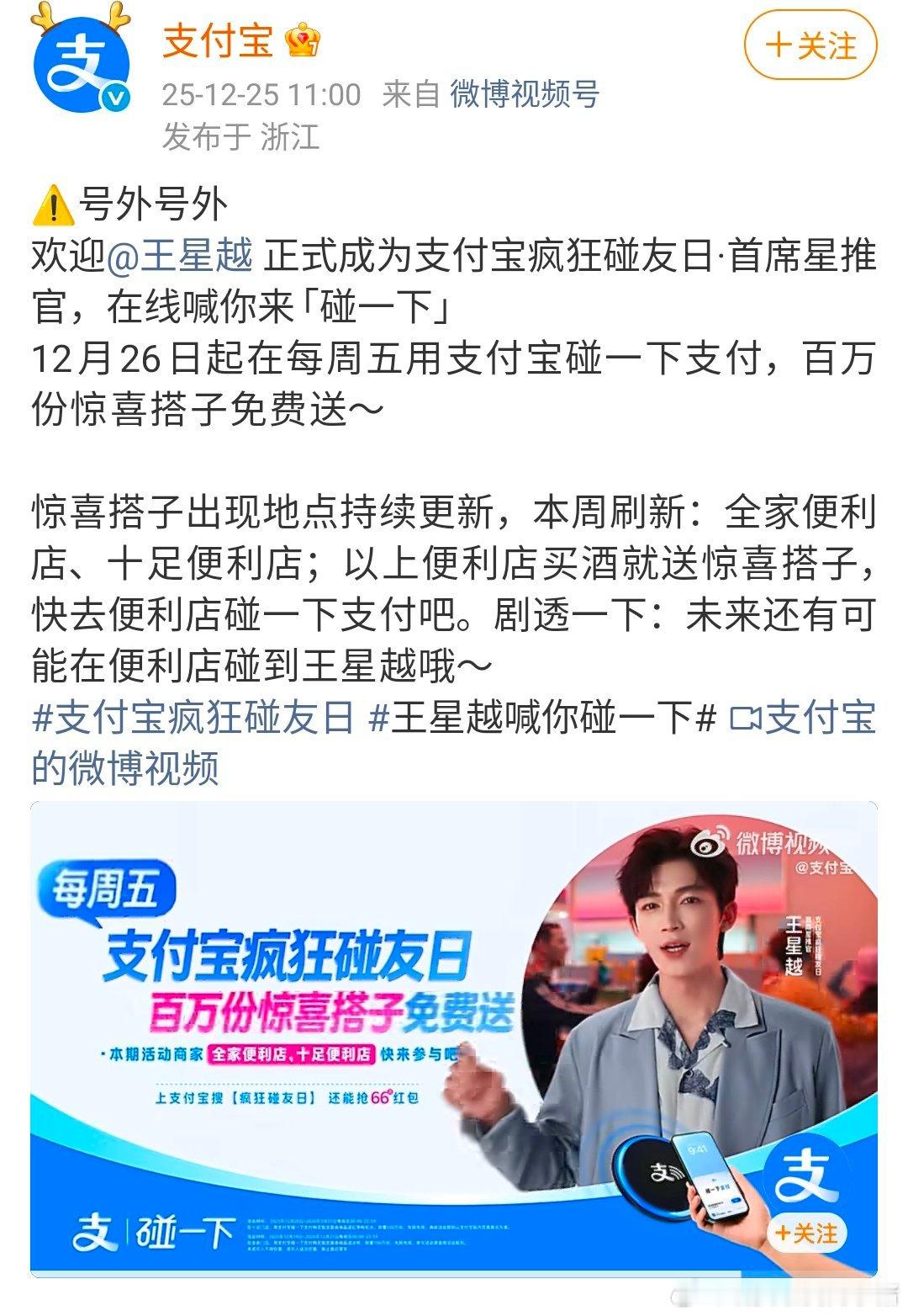 王星越官宣支付宝疯狂碰友日·首席星推官