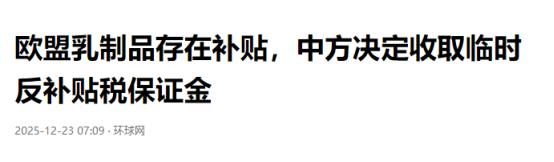 欧盟很恼火:我只是给中国电车加了点税,中国干嘛对我发起反制? 欧盟现在算是彻底陷入了困惑又恼火的情绪里,嘴里念叨着“我不就给中国电车加了点税吗”,转头就被中国的反制打得措手不及。尤其是法国乳制品厂商,这会儿怕是连肠子都悔青了。 12月23日,中国商务部的一纸初裁公告落地,直接让欧洲乳制品行业感受到了前所未有的压力,而这一切的根源,说到底都是欧盟自己先挑起来的贸易摩擦。 这话可不是空穴来风,咱们先把时间线理清楚。早在2023年9月,欧盟委员会主席冯德莱恩就以所谓“公平竞争”为理由,高调宣布要对中国电动汽车展开反补贴调查。 当时这事儿一出来,明眼人都知道,这就是欧盟为了保护本土车企搞的贸易保护主义,毕竟那会儿中国电动车在欧洲市场的势头太猛,2024年6月单月注册量就创下新高,市占率冲到了11%,新注册纯电动车超2.3万辆,环比增长72%,这让欧洲本土车企坐不住了。 欧盟也顺着这股子势头,一步步推进调查,2024年7月先公布初步裁定,对中国电车征收17.4%到38.1%不等的临时反补贴税,后来又几经调整,到10月29日正式敲定,对中国进口纯电动车征收为期五年的最终反补贴税,税率细分到不同企业。 就在欧盟对中国电车加税的措施落地后没多久,中国这边也启动了自己的调查程序,目标直接对准了欧盟的优势产业——乳制品。 其实早在2024年7月29日,中国奶业协会和乳制品工业协会就代表国内产业,正式向商务部提交了对欧盟相关乳制品的反补贴调查申请,理由很充分。 欧盟通过共同农业政策等计划,给本土乳制品产业砸了大量补贴,这些享受补贴的乳制品低价进入中国市场,已经冲击到了国内产业。当年8月21日,商务部正式立案调查,后来因为调查复杂度超出预期,2025年8月又发布了延期公告,把调查期限延长到2026年2月。 经过一年多的审慎调查,中方拿到的证据实打实。调查发现,欧盟的补贴可不是小数目,覆盖了乳及乳制品全产业链,而这些享受补贴的欧盟乳制品大量涌入中国后,直接导致国内乳制品企业库存激增,原本盈利的企业慢慢转为亏损,生产经营陷入困境。 很明显,欧盟乳制品的补贴行为和中国国内产业受到的实质损害之间,存在直接的因果关系。基于这些调查结果,中国商务部12月22日正式发布初裁公告,决定从12月23日起,对原产于欧盟的进口相关乳制品征收临时反补贴税保证金。 这税率可不低,被抽样的企业从21.9%到42.7%不等,配合调查的其他欧盟企业统一按28.6%算,那些不配合调查的,直接按最高档42.7%征收。 被调查的乳制品范围很明确,包括鲜乳酪及凝乳、各种加工乳酪、蓝纹乳酪,还有脂肪含量超10%的未浓缩乳及稀奶油,对应的税则号也一一列明,一点都不模糊。 这下欧盟彻底懵了,尤其是之前蹦得最欢的法国,直接成了反制的“重灾区”。要知道,法国是欧盟乳制品出口大国,奶酪、奶油这些产品在中国市场一直有不少受众,靠着欧盟的农业补贴,在价格上占据不少优势。 现在加征这么高的临时反补贴税,法国乳制品进入中国市场的成本会大幅增加,要么就得自己承担成本压缩利润,要么就提高售价失去竞争力,不管选哪条路,损失都少不了。不少法国乳制品厂商已经开始紧急评估影响,原本规划的对华出口计划也得全盘调整。 中方的反制完全站得住脚,既符合中国《反补贴条例》,也遵循世贸组织规则。商务部贸易救济调查局负责人在答记者问时就明确说了,中方一贯审慎克制使用贸易救济措施,2025年以来根本没对欧方发起任何新调查,只对三起反倾销案件作了终裁。 可反观欧盟,同期对中方18起案件初裁征税、18起终裁征税,还新发起15起调查,光12月19日一天就新启动3起,这明显是滥用贸易救济措施。 其实在这之前,中欧就电车关税问题进行过多次磋商,从2024年6月到11月,双方技术团队你来我往谈了十几轮,在北京、布鲁塞尔都进行过密集沟通,也取得过一些进展,但欧盟始终没积极回应中方核心关切,分歧一直没解决。 中方也不是不想谈,商务部反复强调,反对滥用贸易救济措施的立场不变,愿意通过对话协商妥善处理摩擦,可前提是欧盟得拿出诚意,不能一边搞贸易保护,一边又指望中方忍气吞声。 现在有意思的局面来了,欧盟本想通过加税中国电车保住本土产业,结果反被中方精准反制到痛处。要知道,乳制品是欧盟农业的支柱产业之一,而中国是重要的出口市场,这一记反制可谓直击要害。 这还只是初裁结果,最终裁定要到2026年2月才出来,期间如果欧盟不改变态度,不停止滥用贸易救济措施,后续的措施可能会更严。毕竟中方的反制从来都不是目的,只是维护自身合法权益的必要手段,欧盟要是看不懂这一点,后续可能还会有更多“意外”。