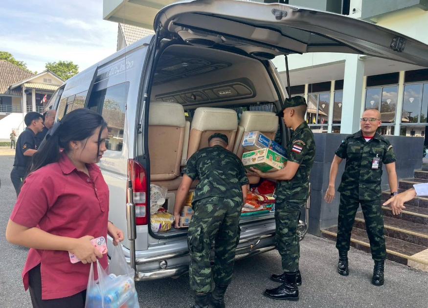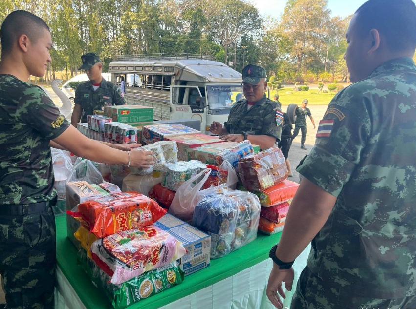 泰国军队接收民众捐赠的食用物资! 主要是以方便面和小零食为主,在前线没饭吃,可