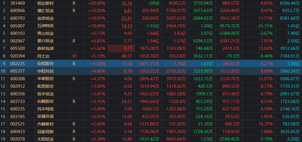 开盘前,我说人民币升值即将破7,这是非常利好进口行业的,比如说造纸行业。截止目前,随着汇率破7,造纸行业纷纷启动大涨,恒达新材20厘米涨停,博汇纸业,宜宾纸业,五洲特纸均10厘米涨停。森林包装,景兴纸业,青山纸业,恒丰纸业均出现大幅上涨。 人民币升值,航空公司和造纸是最受益升值的两个板块,造纸需要进口大量纸浆,升值可以明显降低进口成本。 造纸和航空公司还有另一个共同逻辑——都是反内卷行业。