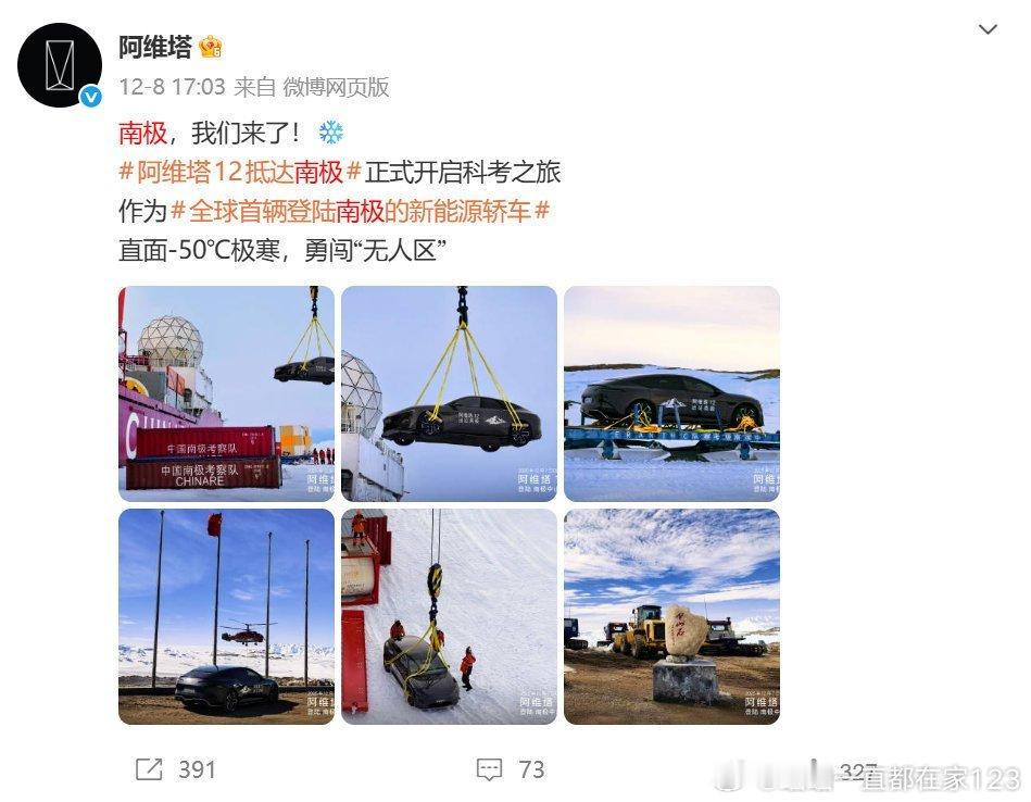 阿维塔官方回应南极之旅争议先说我的观点,我旗帜鲜明的支持以支援考察任务为目标,反对冬季测试为目标的南极相关活动,南极那地方生态那么脆弱,如无必要还是别去添乱了。我以前其实是没留意过这事儿,偶然关注到这个事儿...还是老司机的微博(比如温度,比如雪地胎...)。当时我最大的感触就是✓ 在北方的冬天跑到南极这波操作属实没必要。这就好比冬天来了不去漠河体验寒冷,非得去海南感受低温。如果只是测试,那真的没必要的,南极的生态环境还挺脆弱的,如无必要,还是不去打扰的好。如果是支持科考,那还是挺好的事儿,比如买的坦克300,就是去支持长城站的物资运输,日常通勤。真正去南极内陆的还得靠专业的人做专业的事儿,专业的车去专业的地方,比如:THT550履带式牵引车+雪豹6×6轮式载具。不管是啥suv还是啥新能源,还是老老实实的在自己应该有的场景里去发光发热吧最后还是希望阿维塔12在南极待16个月,能检测出更多场景下的问题,交付给消费者更靠谱的车吧。大v聊车