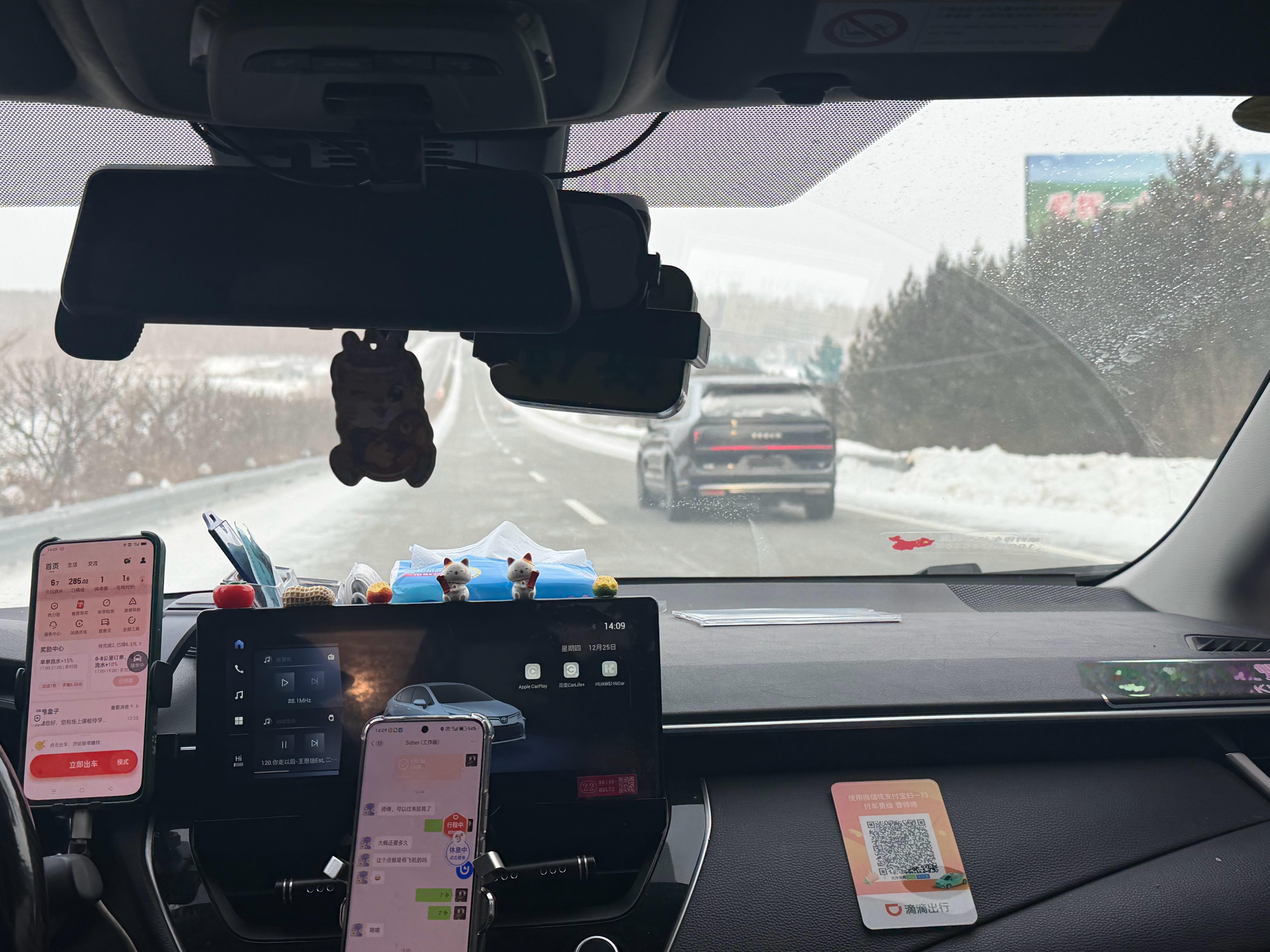 大雪纷飞,出门看到第一台车icar27,然后就是新款哈弗H9,吉利雷达,极氪9X