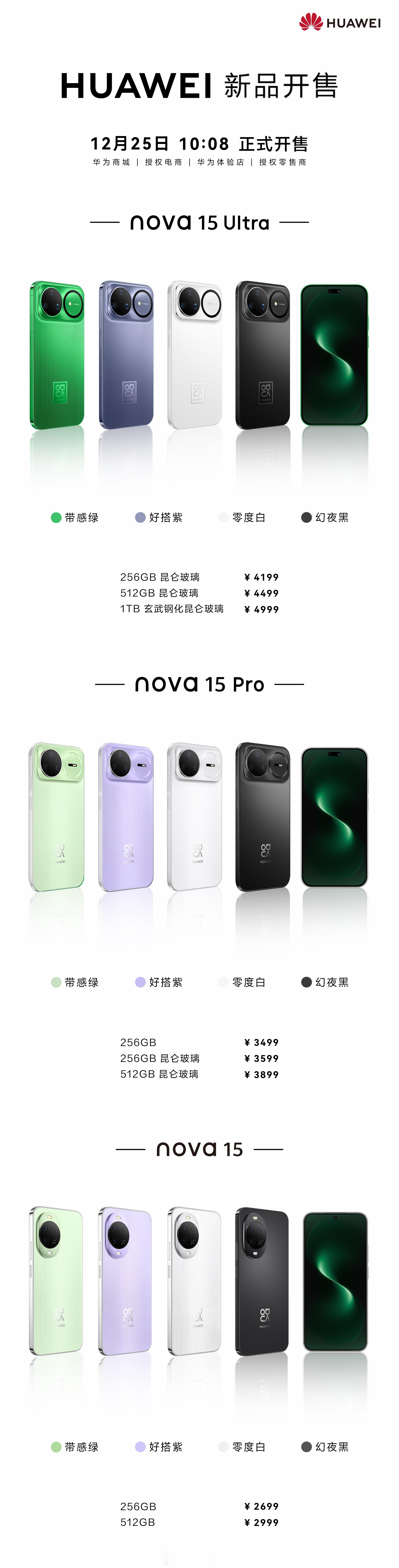 华为nova15系列正式开售 准备买一台nova 15系列大家建议买那个版本?