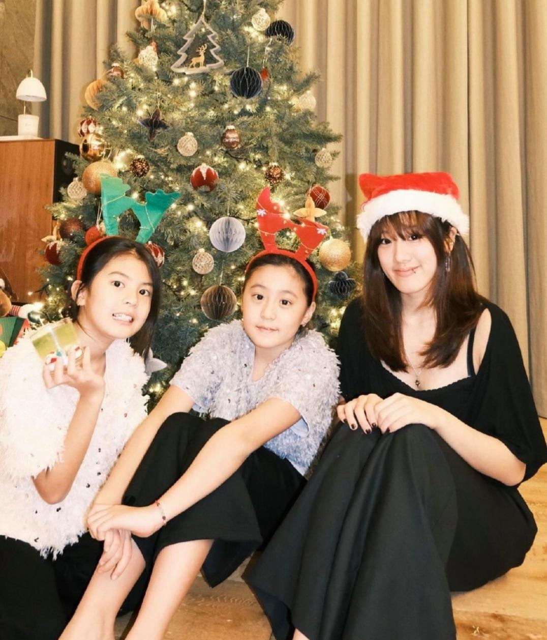 贾静雯一家五口庆祝圣诞节,三个女儿都在场。她的女儿们颜值都很一般,完全没有遗传到她的美貌,实在太可惜了!