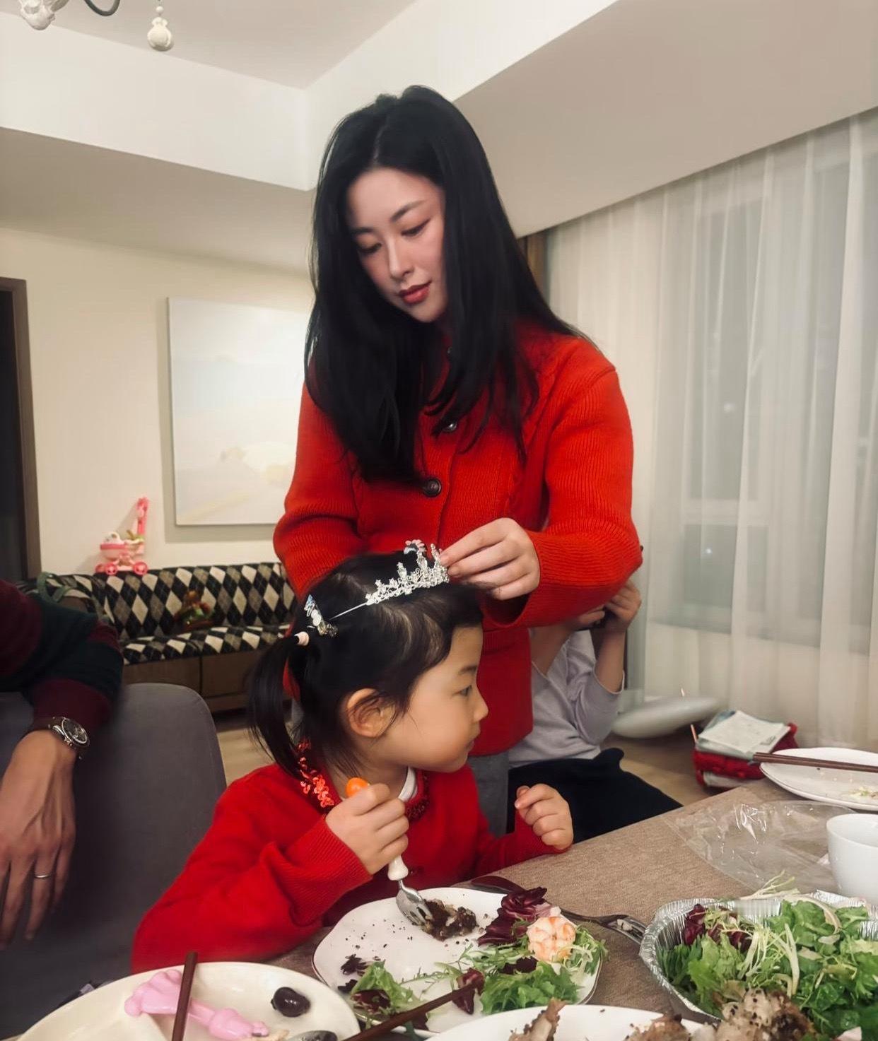 41岁朱珠和老公女儿在北京家中庆祝圣诞节,一家人穿红色衣服,看起来喜气洋洋!她的女儿挺可爱的,就是颜值一般,长得太像爸爸了!