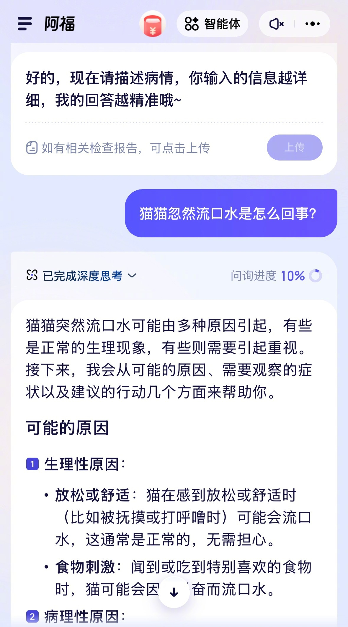 AI救我狗命 有一说一,现在已经离不开AI软件了。每天都会问AI一些问题,现在的AI更像一个百科全书,什么都懂,比起自己搜索引擎搜,AI给的信息更全面。这话题下也有意思,活学活用利用AI养宠物,利用AI拍皮肤,AI观察毛孩子饮食,诊断出是否有异样,可以说是AI结合生活了,减少养宠物时候的焦虑。就挺方便的。