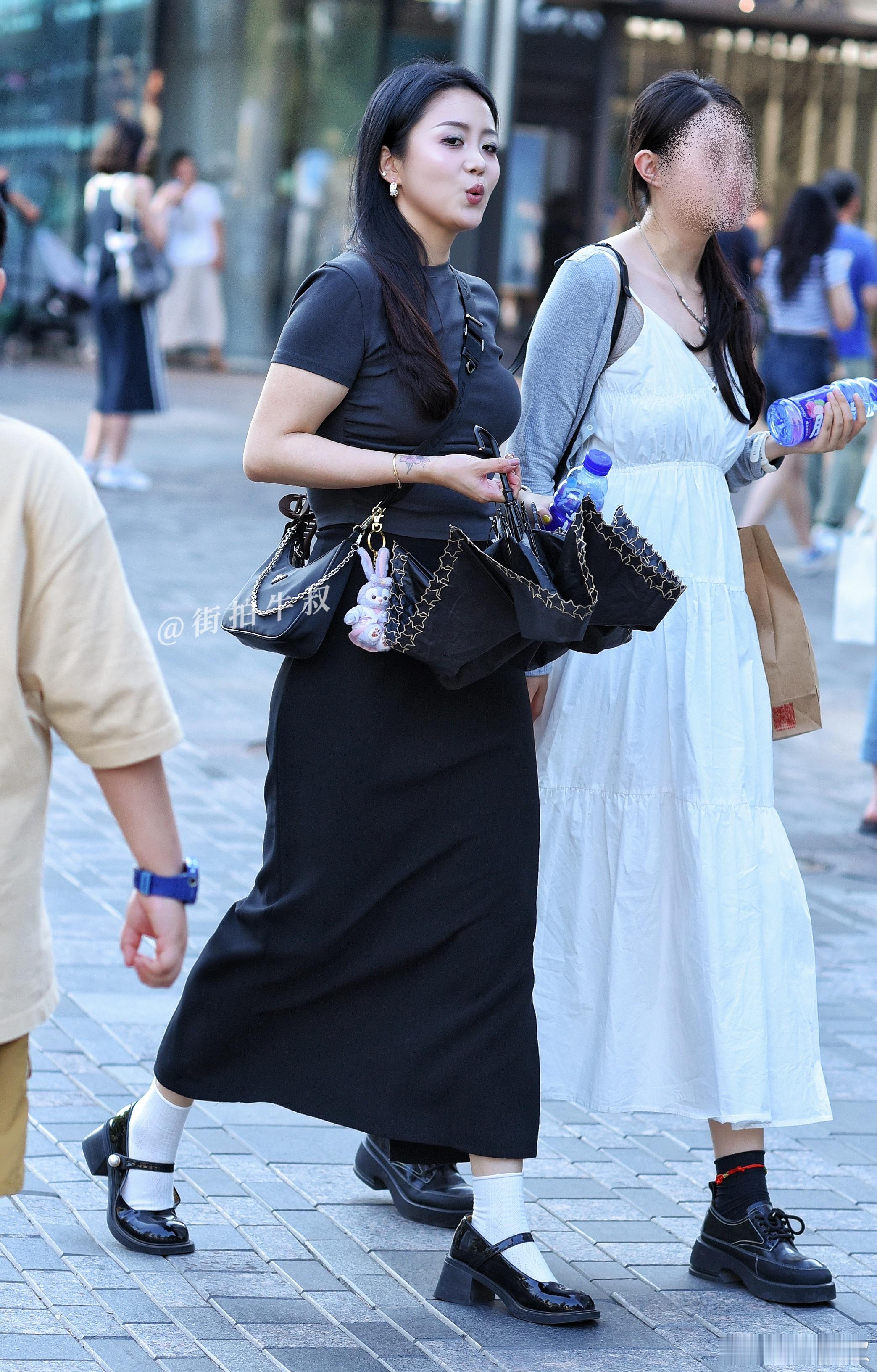 复古好看的皮鞋半身裙