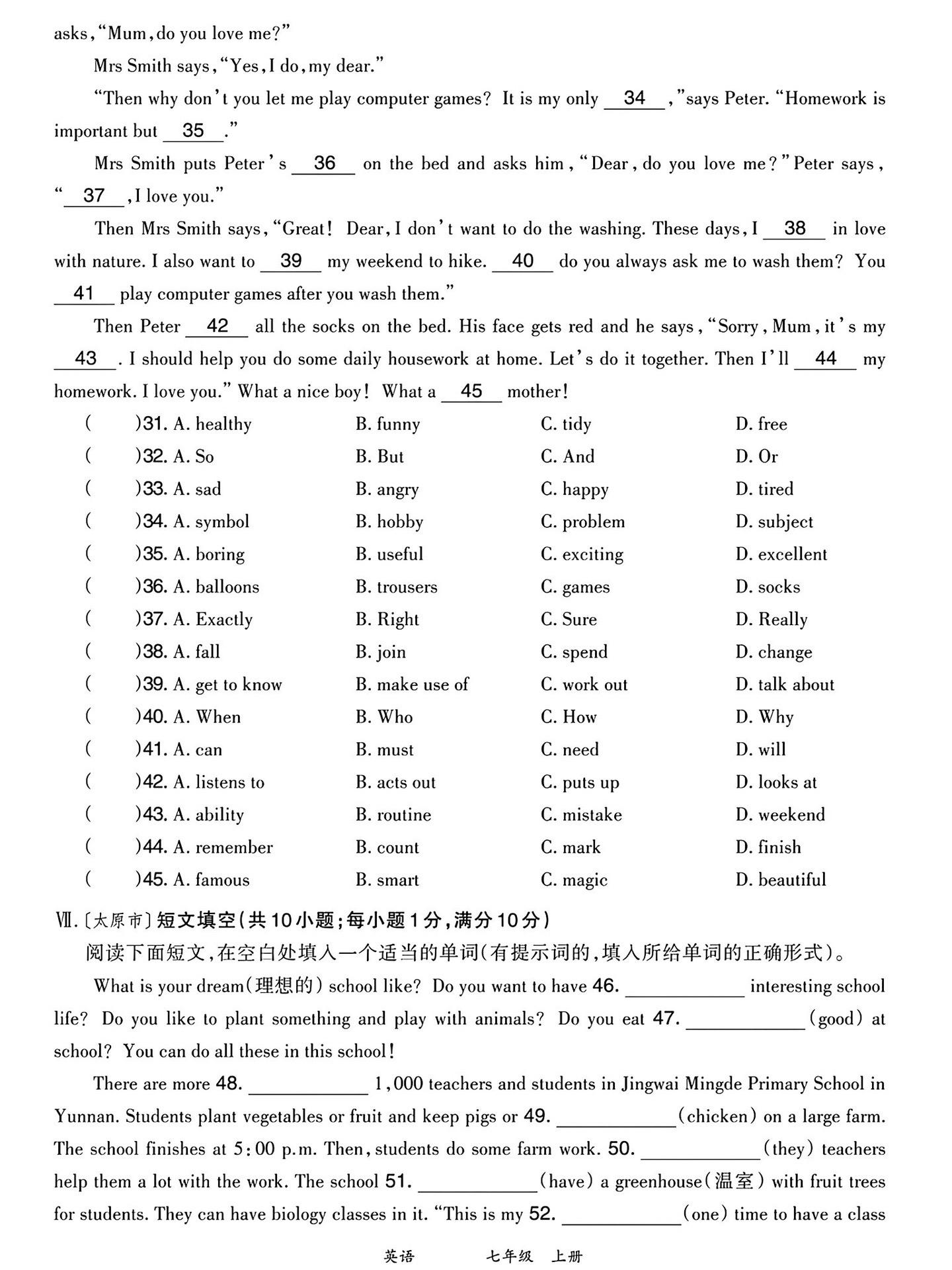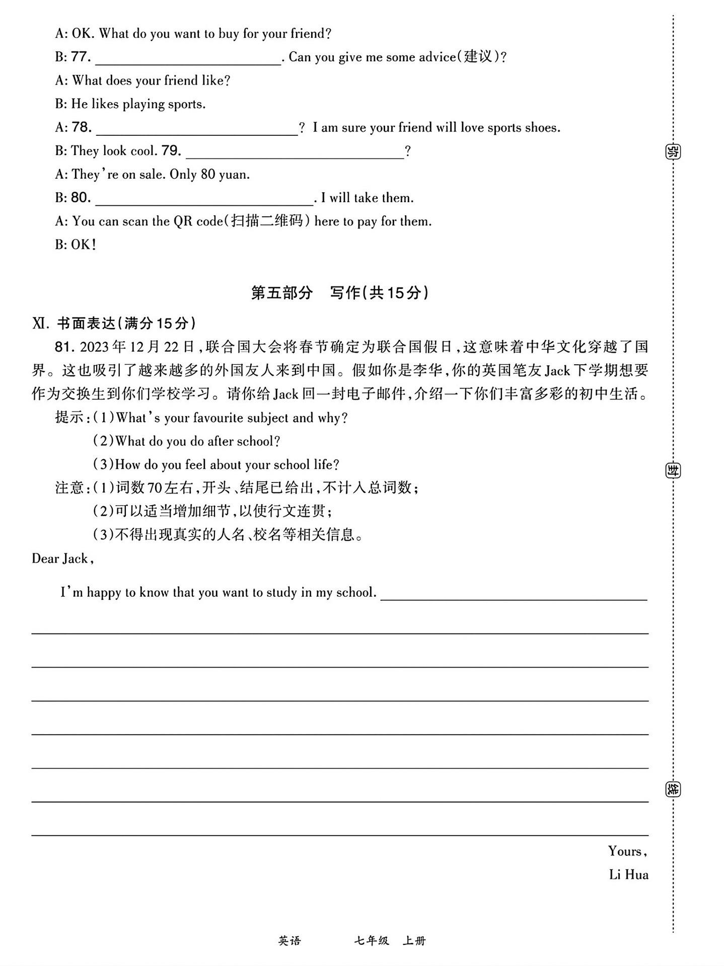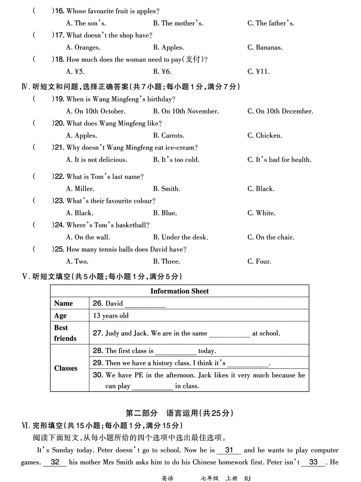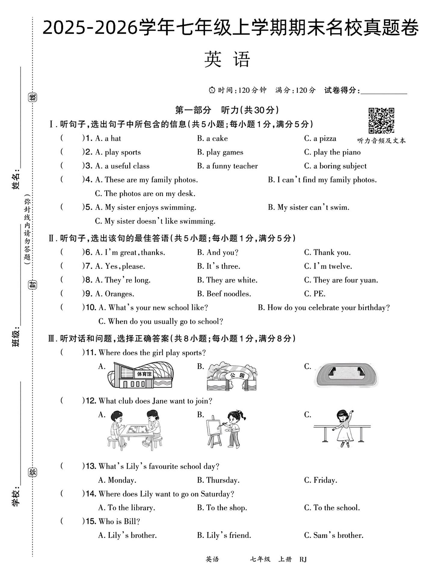 26年七年级上册语文期末考试真题检测卷。七年级上册语文期末考试真题检测...