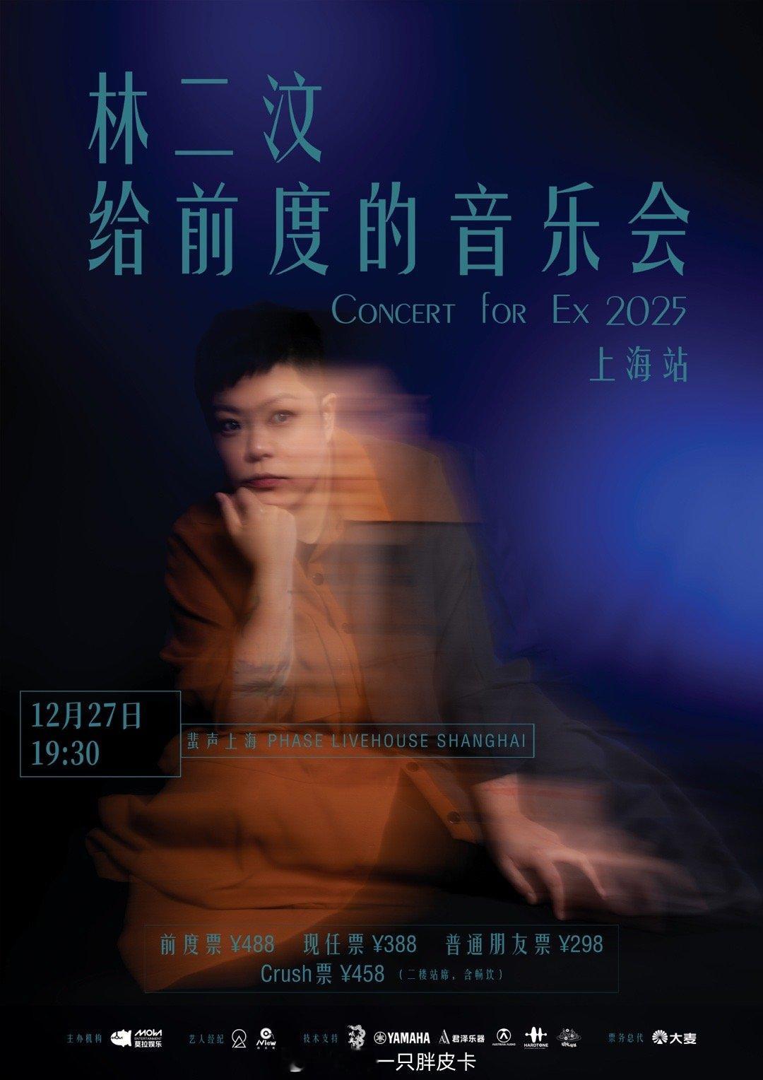 林二汶「给前度的音乐会」周六在上海演出啦!『无论我哋爱过几多个错,爱过几多个对,都可能系为了呢个人。遇到呢个人,乜都不紧要了?最紧要嘅系呢个对嘅人一出现嘅时候,你已经应承咗自己,你以后都唔要再有前度,起码呢个人唔可以系前度』。距离在2011年举行的「给前度的音乐会」十四年过去,我经常还会想起林二汶在现场说的这段话,有些人成为歌单里的前度,有些歌却始终陪在身边。在全新重启的「给前度的音乐会2025」,『旧的』是整个Show的灵魂与核心,而那些『新的』则不止是复刻,更是重生。那些不敢触碰的回忆、未曾释怀的遗憾、带着希望的前行,都在她的声音里找到了安放的角落,继续治愈着你我。广州和深圳之后,2025年最后一场林二汶「给前度的音乐会」这个星期六(12月27日)就要来到上海了,你们准备好去现场了吗~📅 演出时间:2025年12月27日(周六)19:30📍 演出场地:蜚声上海 PHASE LIVEHOUSE SHANGHAI(上海市静安区中兴路1683号金融街购物中心3层L3-27)