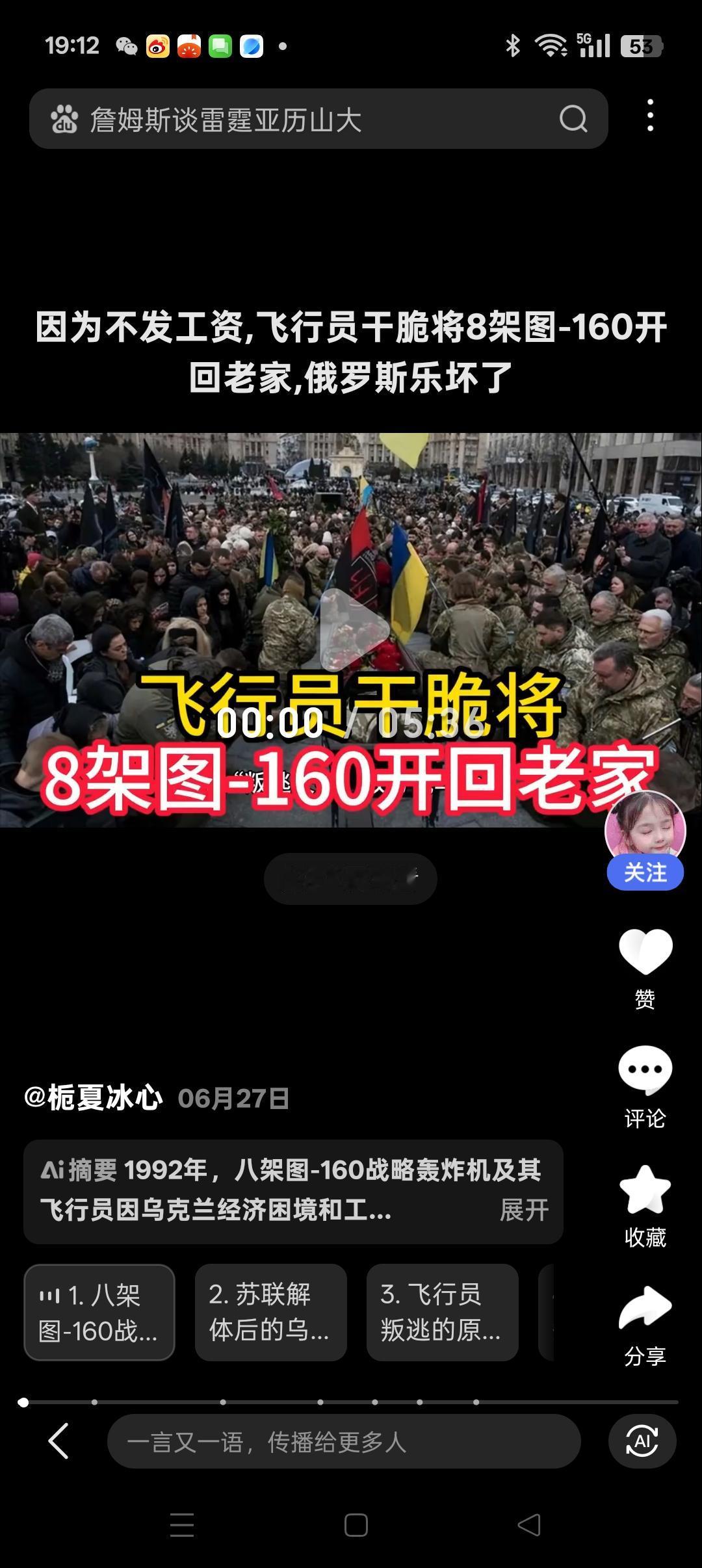 假如90年代中国向乌克兰购入图160 上世纪90年代,苏联解体后,代表当时远程战略轰炸机最高水平的图160,乌克兰继承了19架图-160轰炸机,这些飞机原本部署在乌克兰境内的普里卢基基地,隶属于苏联第184重型轰炸机航空团。 当时,除了航母以外,中国最缺少的就是远程战略轰炸机。为此,中方就购买图160等事宜与乌克兰进行了商业谈判,并已进入了签约付款阶段,正在这关键的时刻,俄罗斯头一个跳出来以断绝对乌油气供应相威胁,阻止中乌双方的交易,随后,美国也跳出来加入了反对乌克兰向中国出售图160的行列,并提出以2000万美元的单价向乌克兰购买三架图160,同样也引起了俄罗斯的强烈反对,最终的结局非常戏剧化:一是中方向乌方进口图160的交易只好就此作罢;二是由于乌方发不出工资,八名乌克兰空军飞行员驾着八架图-160以训练的名义,飞到了俄罗斯老家,不回来了,俄罗斯就此逼迫乌克兰以每架2500万美元的价格抵了乌克兰对俄罗斯的欠帐;三是余下的11架图160在美国的监督下,予以拆解,以获取美国的口头安全保障。在美俄的联手打压下,中国欲通过向乌克兰进口图160来提升远程战略攻击能力的努力半途而废。 假如当时中方成功地从乌方获得了图160战机的话,情况又会怎样呢?!不外乎喜忧参半两种情形,喜的是中国较早地拥有了远程空基核打击手段,忧得是在配件供给、修理维护等方面会受到俄罗斯的打压。更为严重的是,也许我们就没有今天轰20的研发了。 他人断供的结果是逼得我们奋发图强,我们许多装备不都是这样一路走来的吗?!