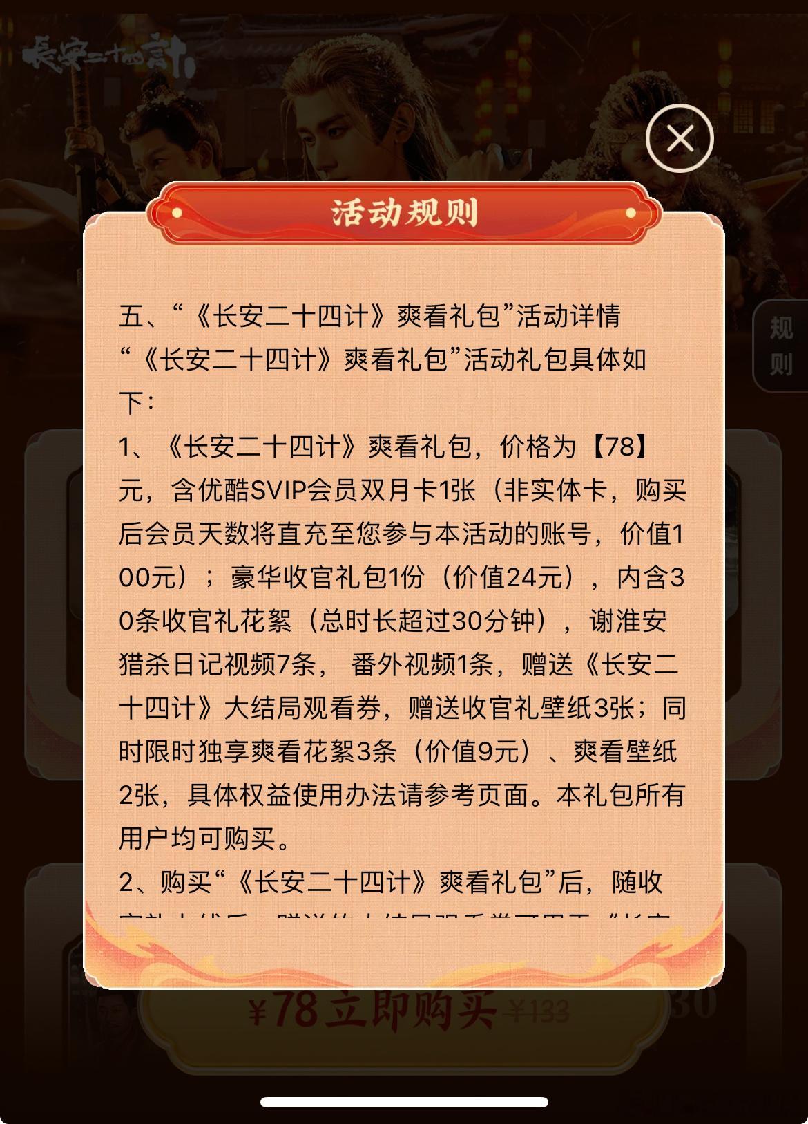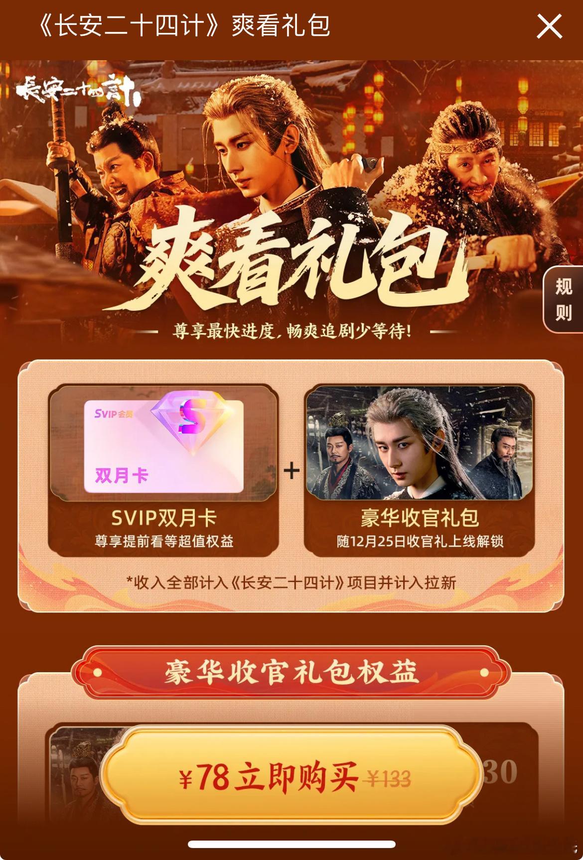 长安二十四计收官礼超点竟然是78块我靠,第一次见……没有18/24块的选项,直接SVIP双月卡78……😂还能这样收割,赎罪款是么🙈